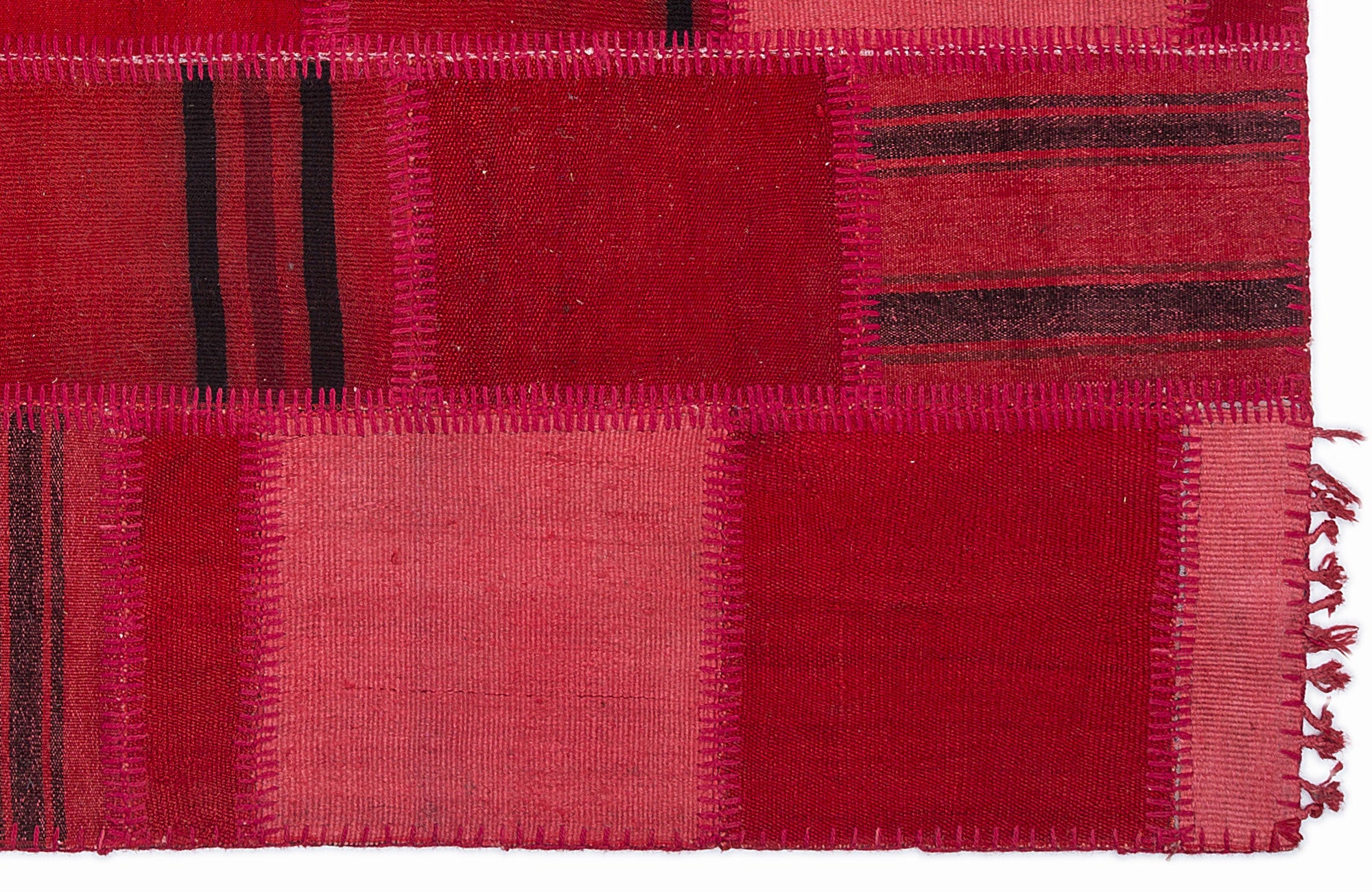 Teselya Red Patchwork Wool Handmade Area Rug 5'3" x 7'7"