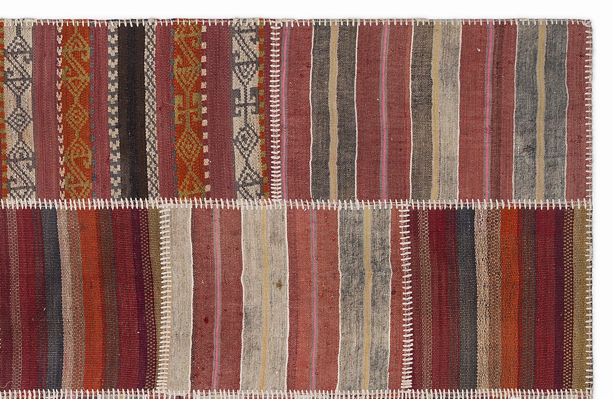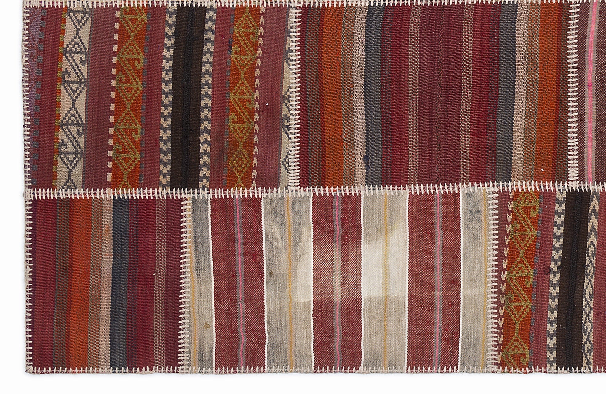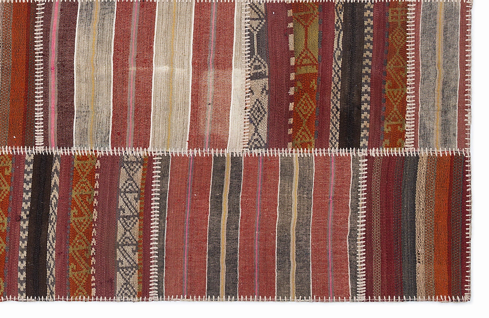 Teselya Red Striped Wool Handmade Area Rug 5'3" x 7'7"
