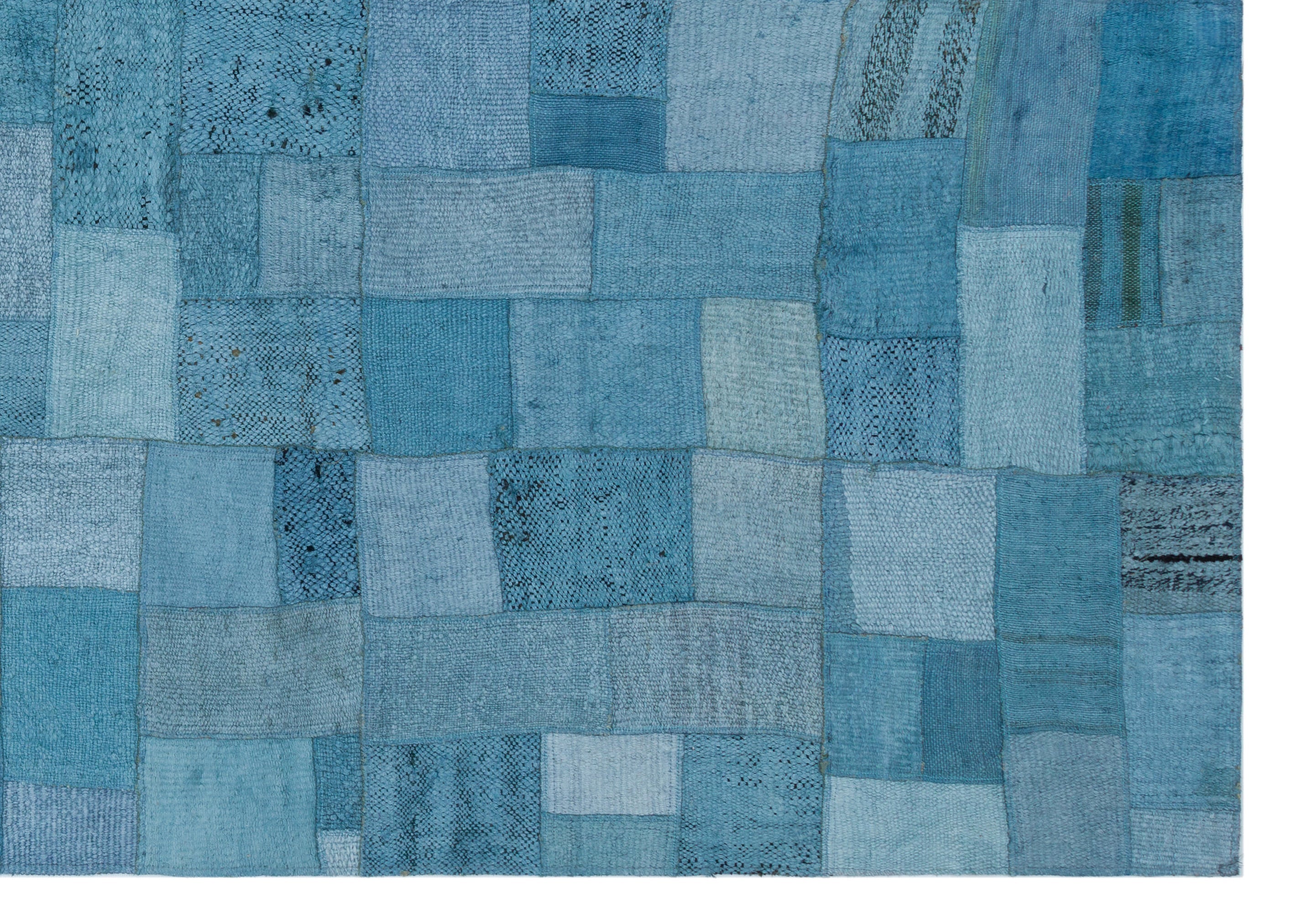 Teselya Turquoise Patchwork Wool Handmade Area Rug 5'3" x 7'5"