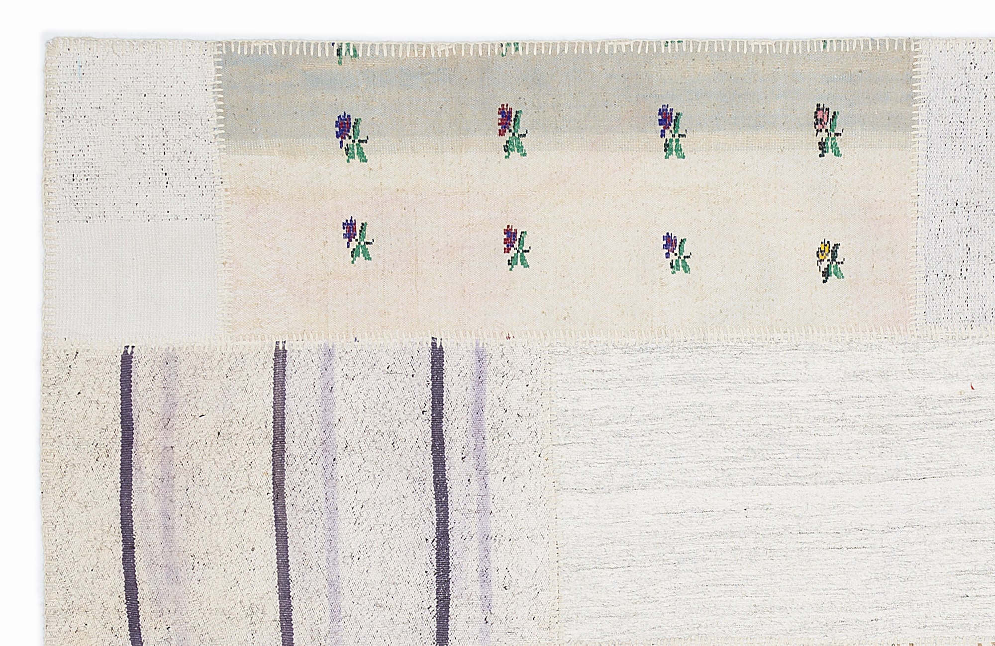 Teselya White Striped Wool Handmade Area Rug 5'3" x 7'7"