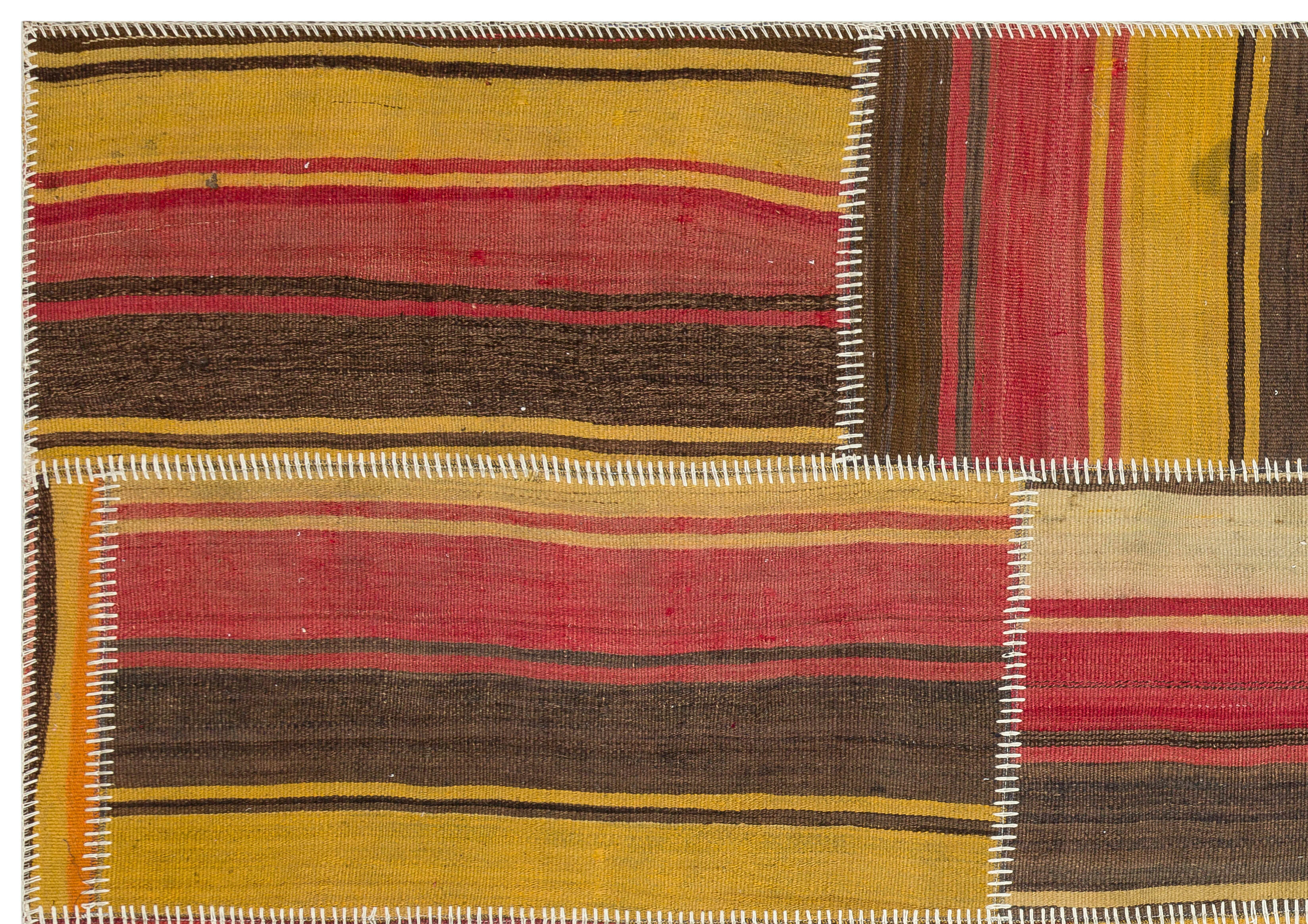 Teselya Yellow Striped Wool Handmade Area Rug 5'3" x 7'7"