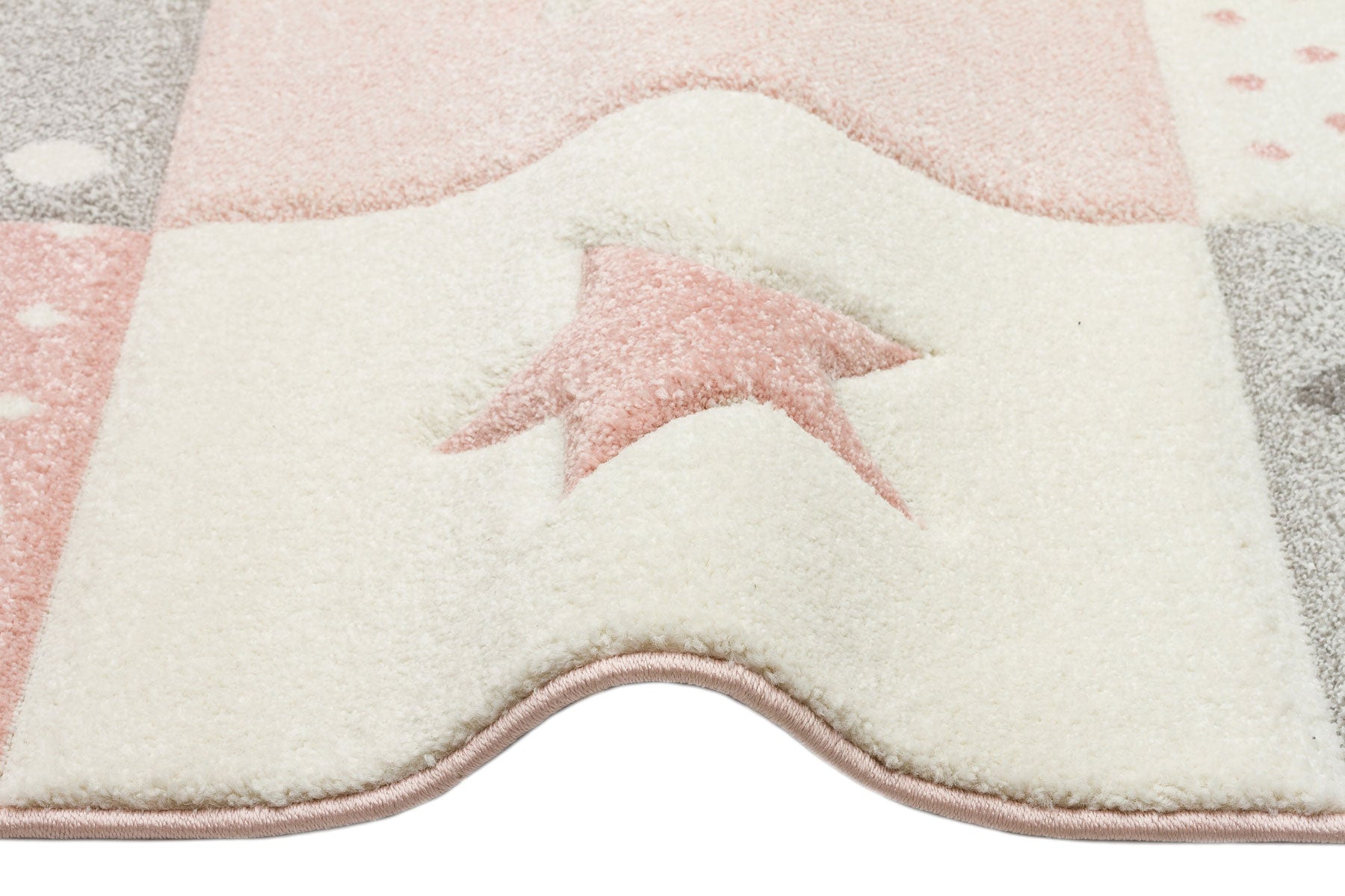 This figured kids rug boasts a modern geometric pattern carpet that complements various room decors and stimulates visual interest for children. The soft pile carpet surface provides comfort for floor activities and naps. Its easy clean rug design allows parents to maintain hygiene effortlessly, making it perfect as a childrens playroom rug or children floor mat.