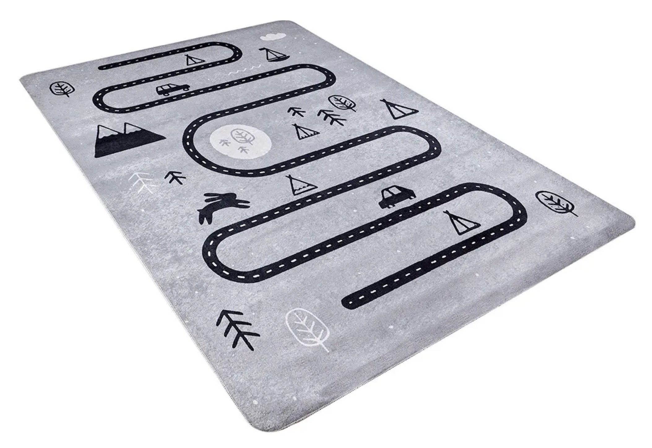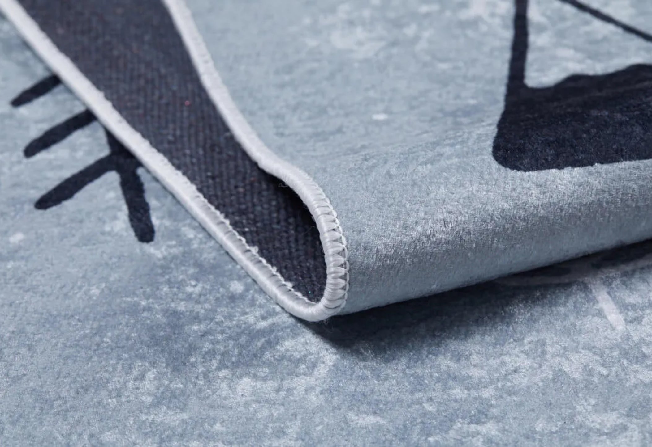 Kids Digital Print Rug - Grey Figured Design, Non Slip, Antibacterial Carpet for Playroom