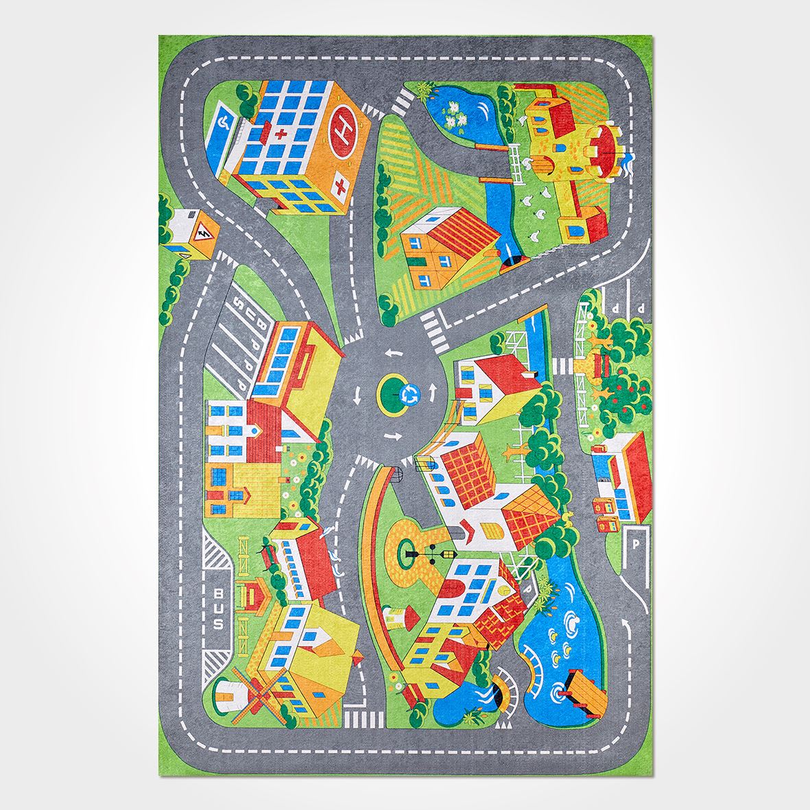 The Kids Digital Print Rug is a vibrant and durable kids digital print rug designed to enhance any playroom while providing a safe, comfortable surface for children. Crafted from high-quality polyester chenille carpet combined with soft cotton yarn, this washable children's rug offers a non slip kids rug feature that keeps it securely in place on any floor. Measuring [insert dimensions], this flatweave kids mat is perfect as a playroom floor covering or kids room decor rug, blending style and function seamlessly.