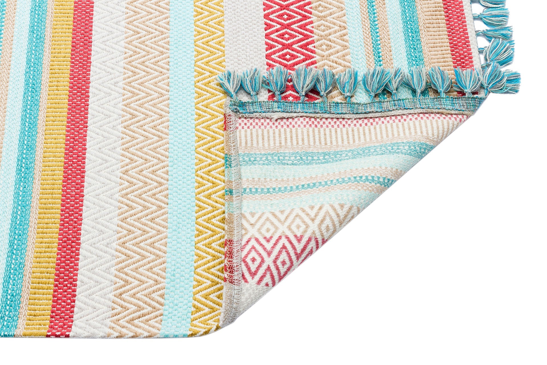 - Flatweave cotton carpet construction offering durability and breathability