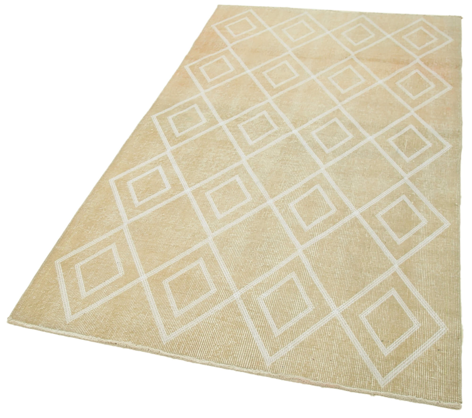 Carpet Beige Geometric Cotton Wool Handmade Area Rug 3'9'' x 6'9''