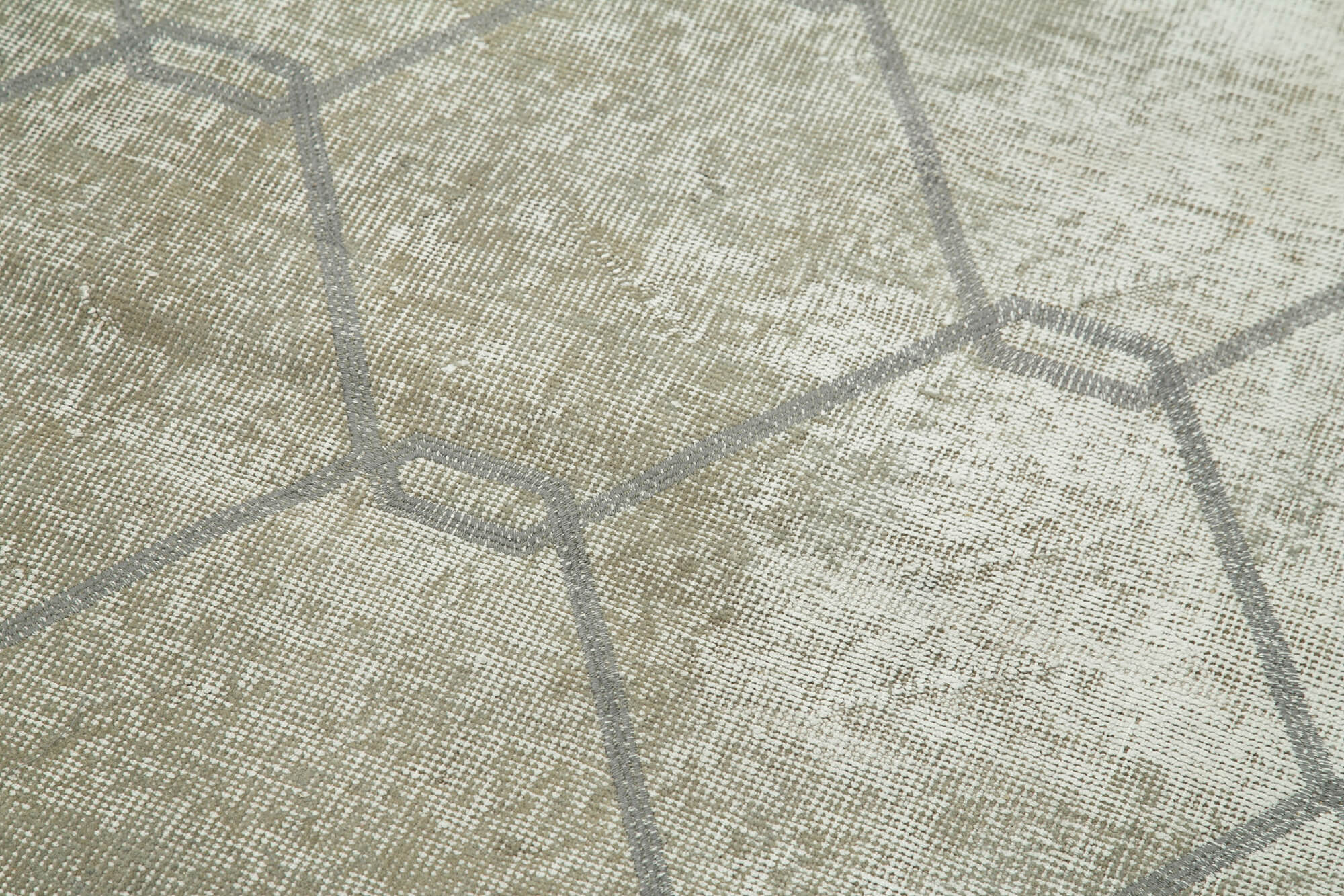 Each vintage handwoven rug is a Turkish hand knotted carpet made using traditional woven carpet techniques passed down through generations. The durable wool carpet fibers ensure long-lasting use, while the handcrafted cotton rug base provides a soft yet sturdy foundation. This cotton wool carpet has been carefully selected, cleaned, and treated with special washing methods to neutralize original colors and enhance the subtle grey shades.