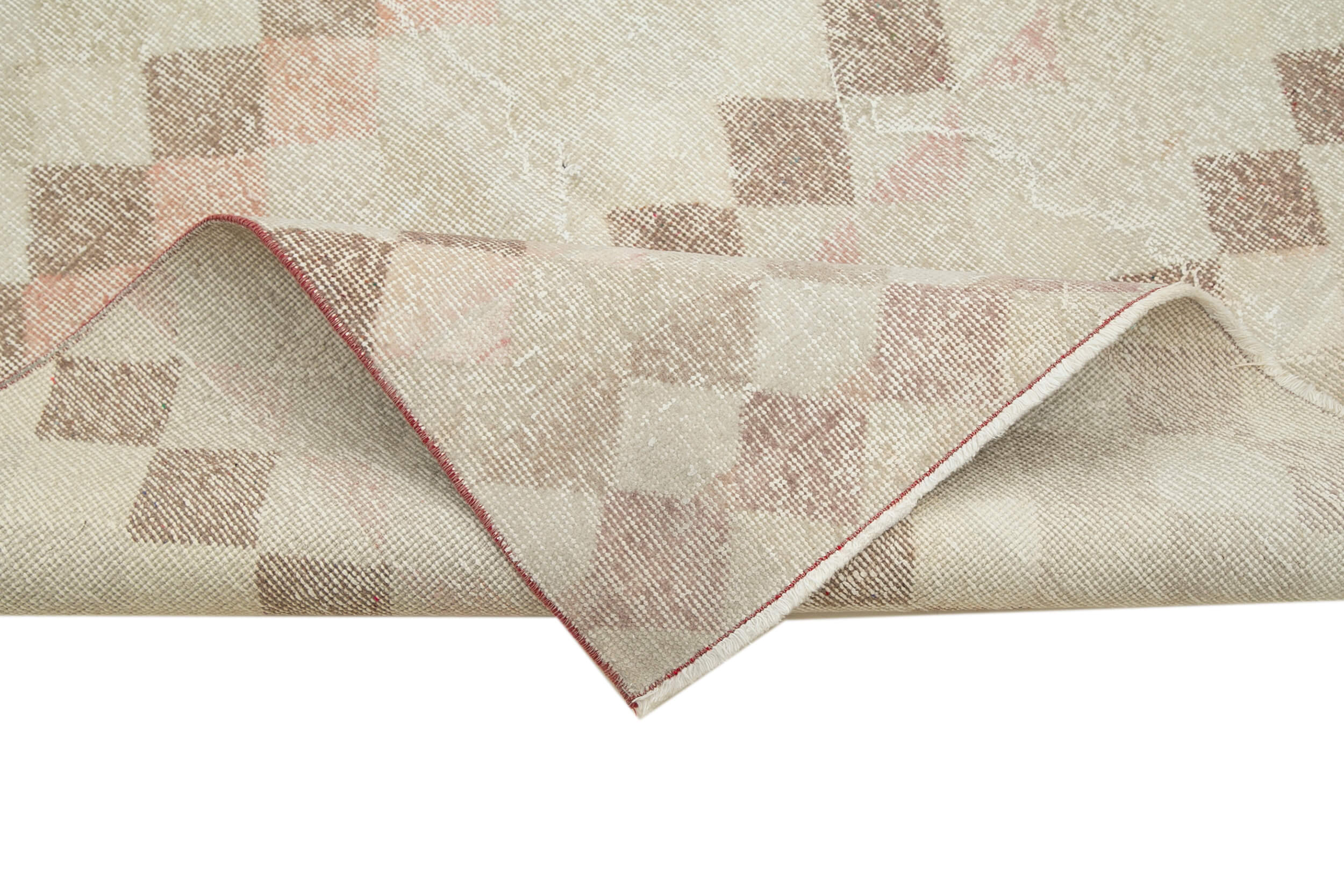 Checkered Runner Beige Geometric Cotton Wool Handmade Area Rug 4'4'' x 8'11''