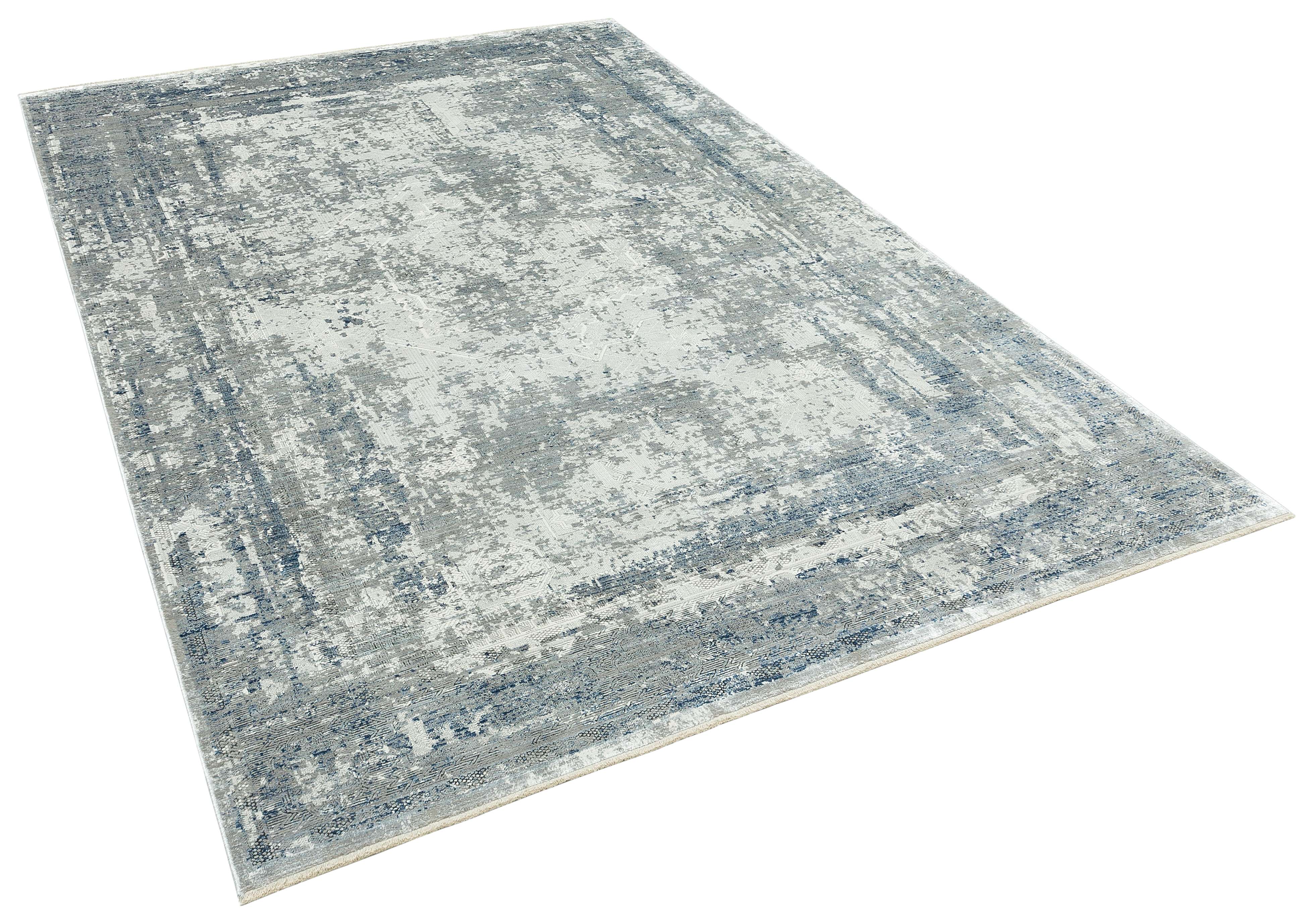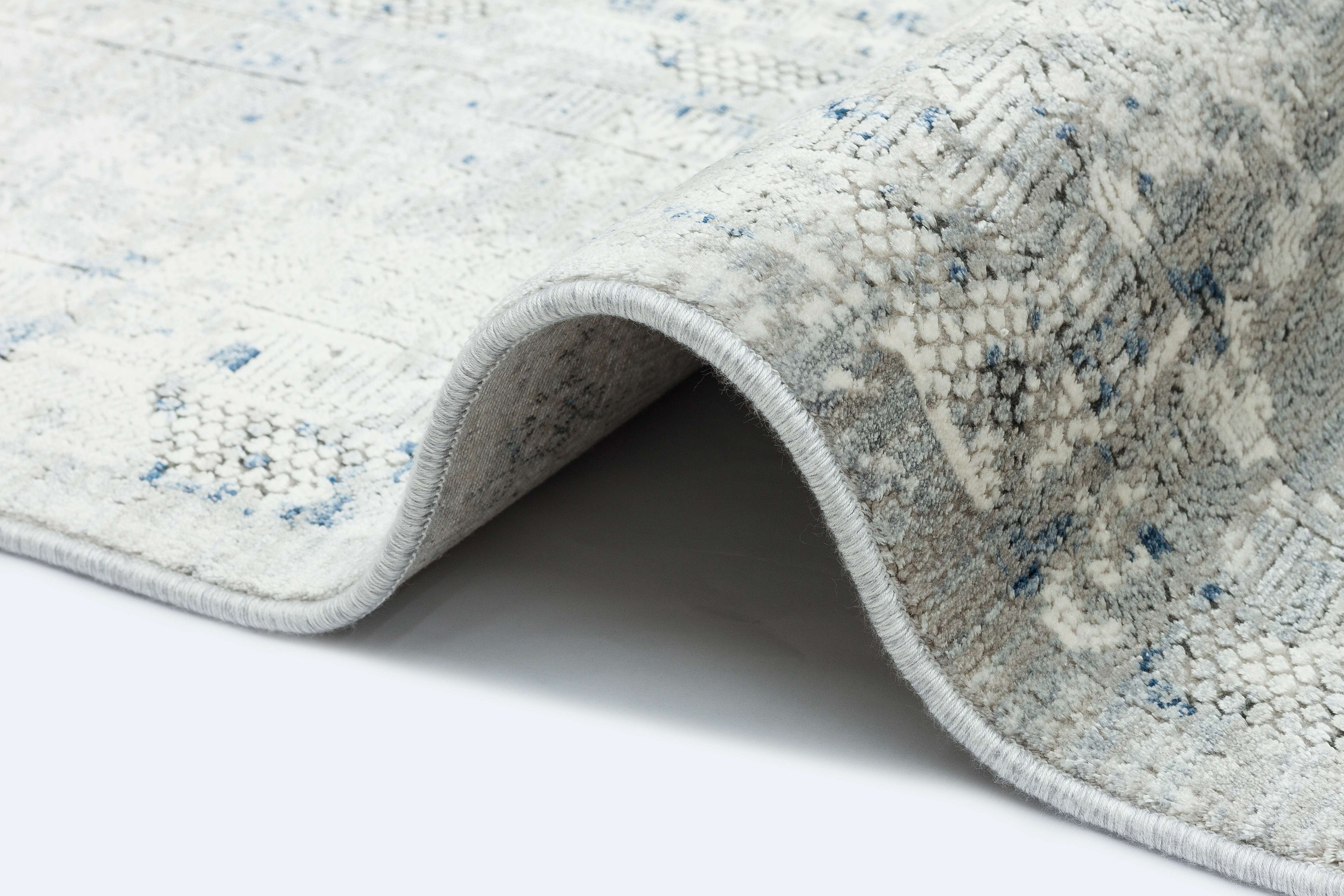 - Machine made rug crafted from durable viscose yarn for strength and softness