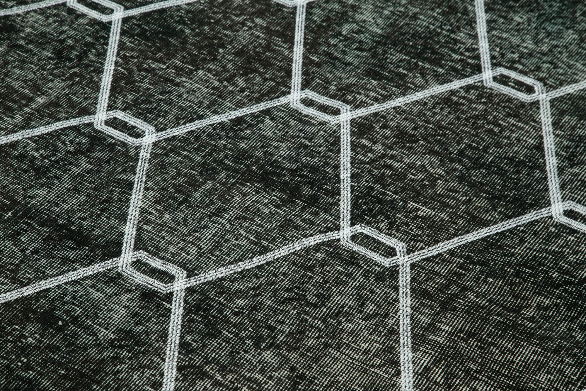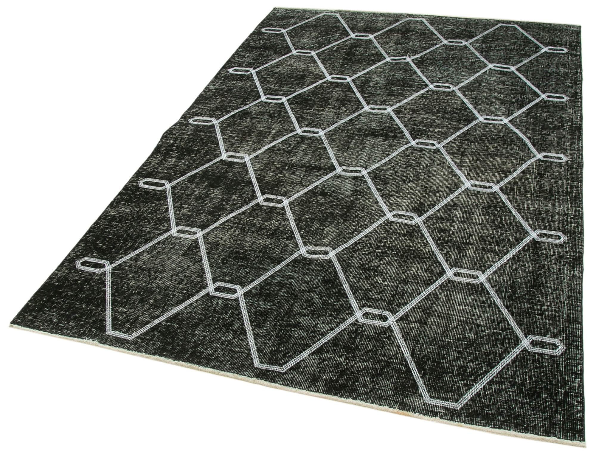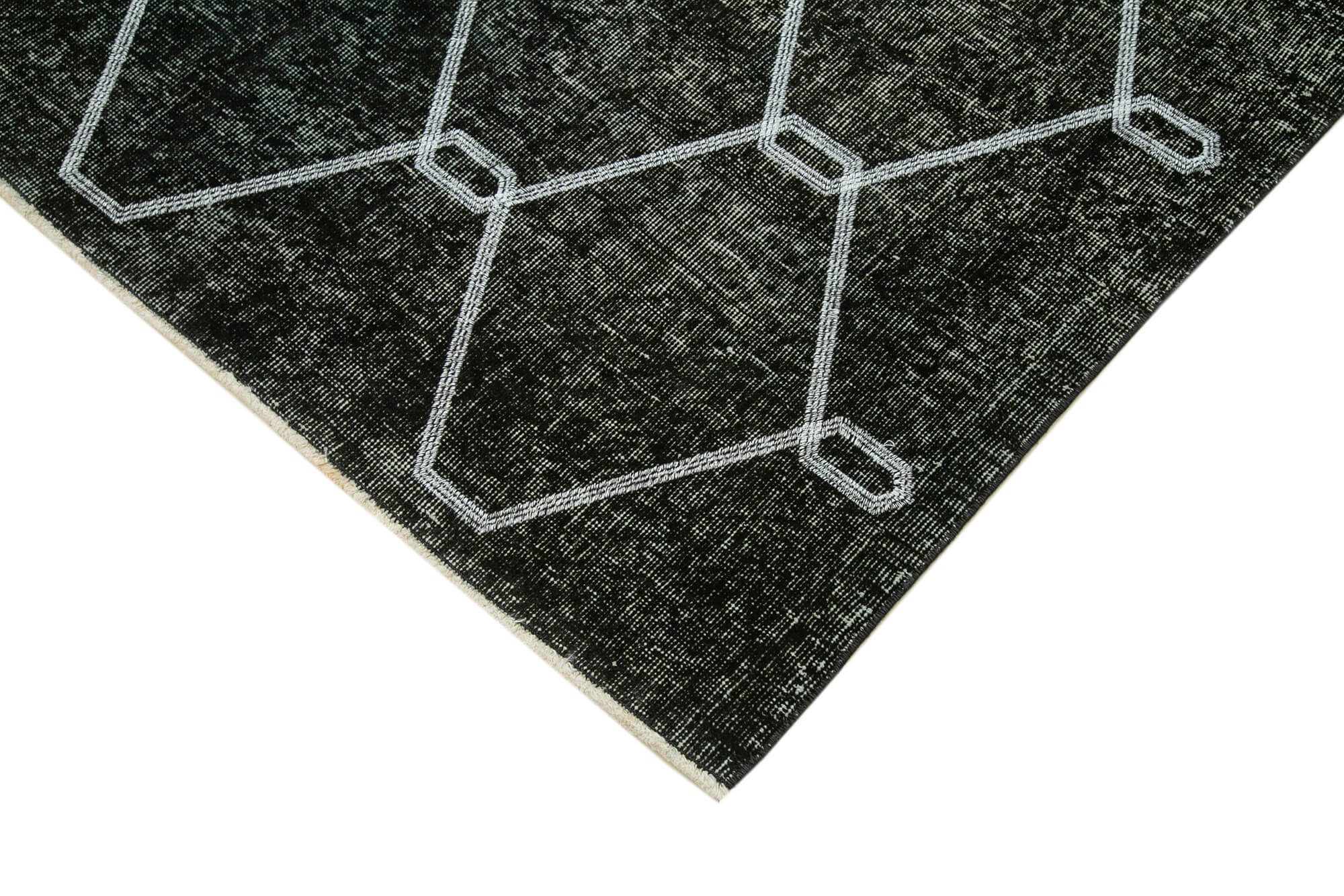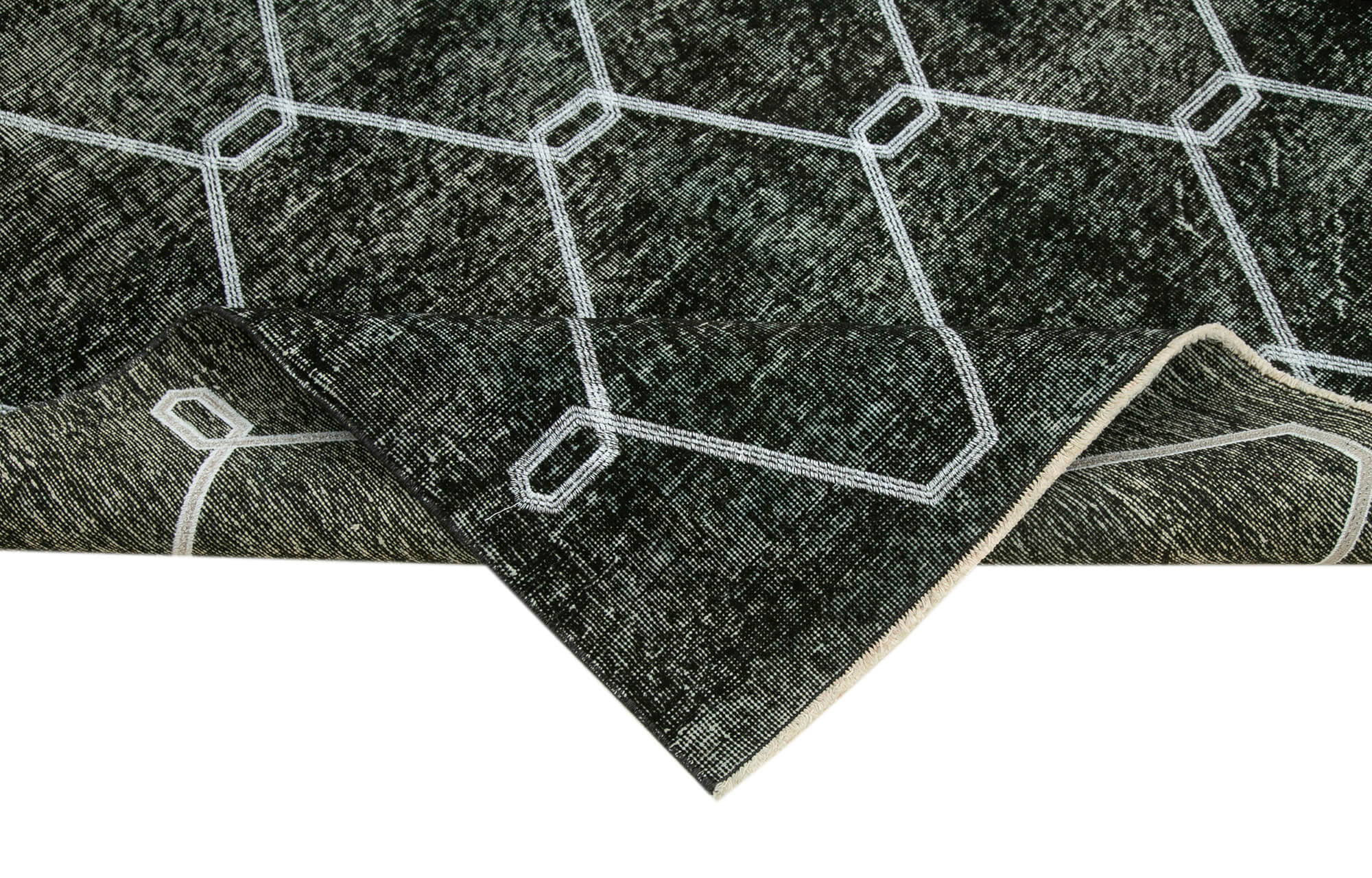 Geometric Carpet Black Geometric Cotton Wool Handmade Area Rug 4'8'' x 6'11''