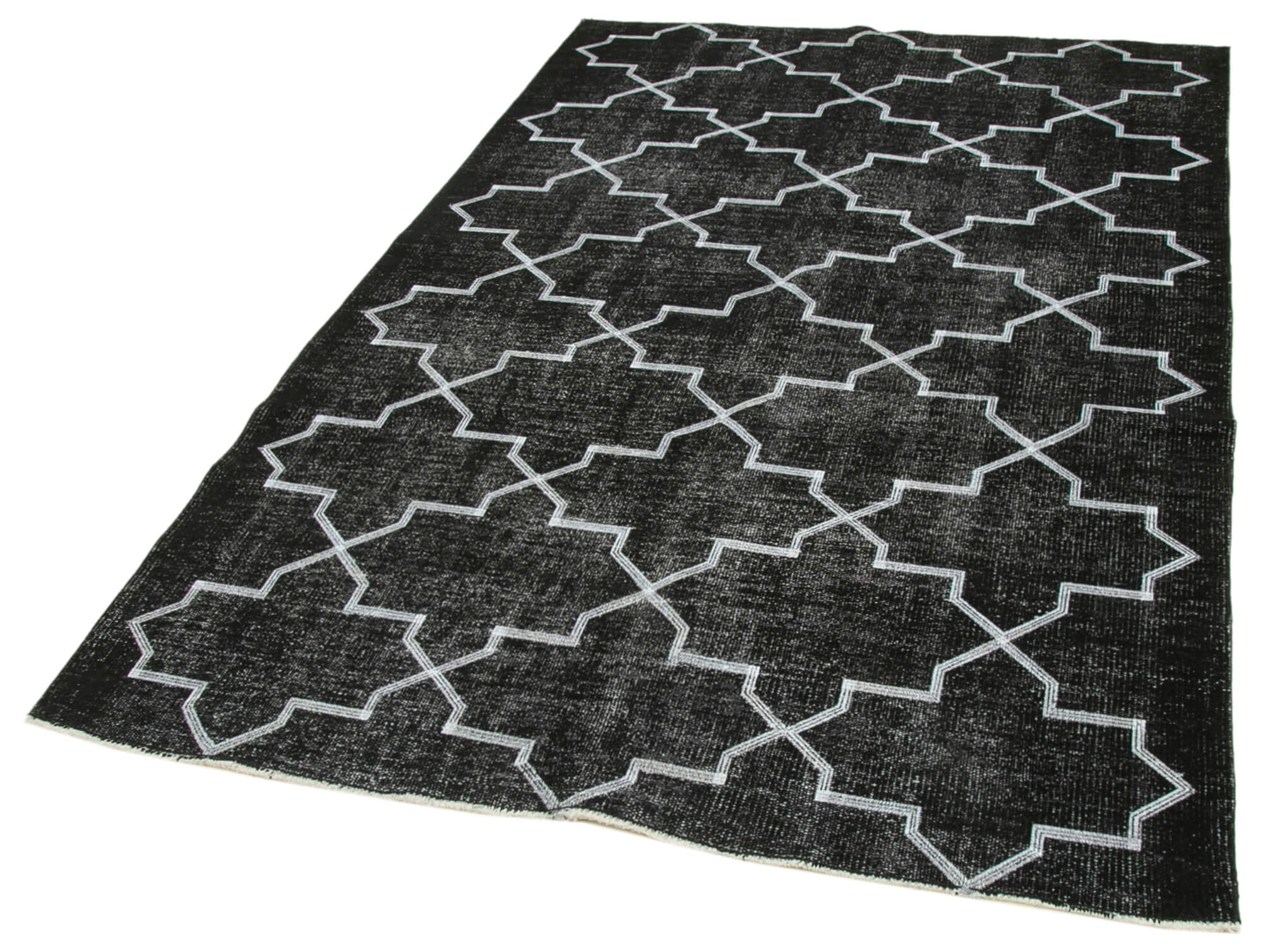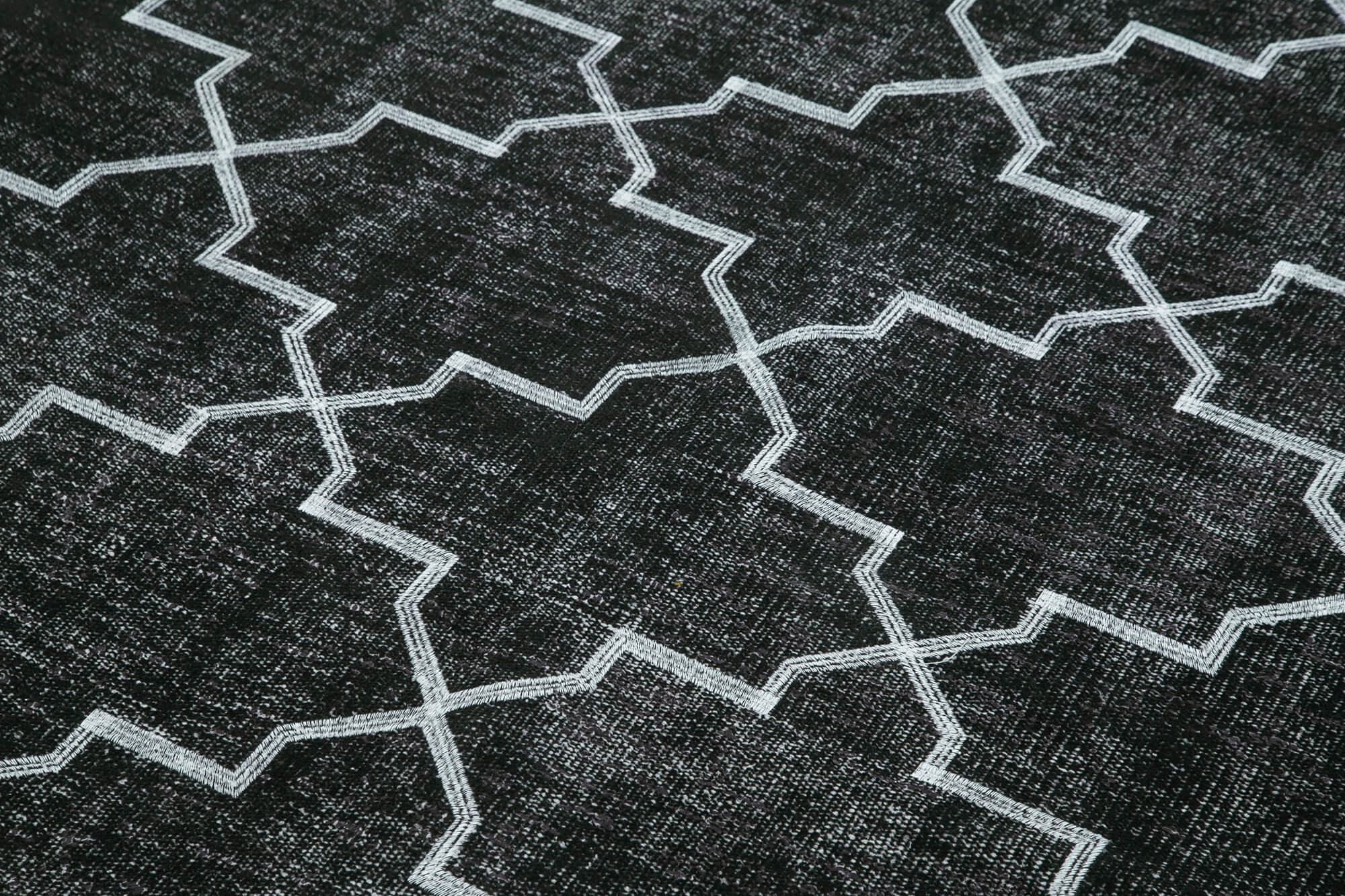 Geometric Carpet Black Geometric Cotton Wool Handmade Area Rug 5'0'' x 7'11''