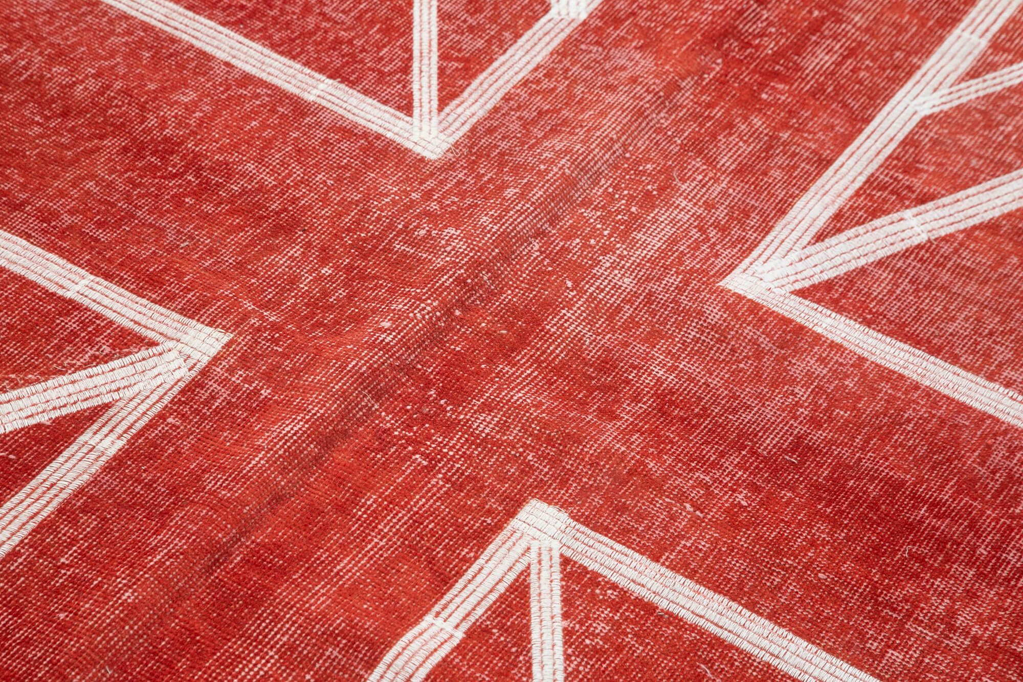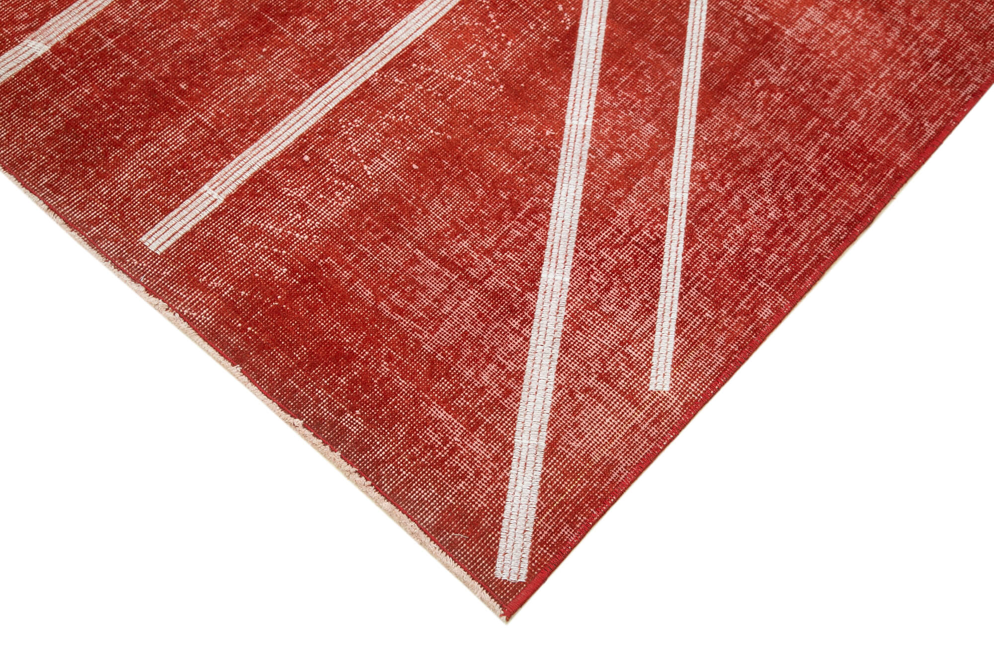 Geometric Carpet Red Geometric Cotton Wool Handmade Area Rug 4'8'' x 7'10''