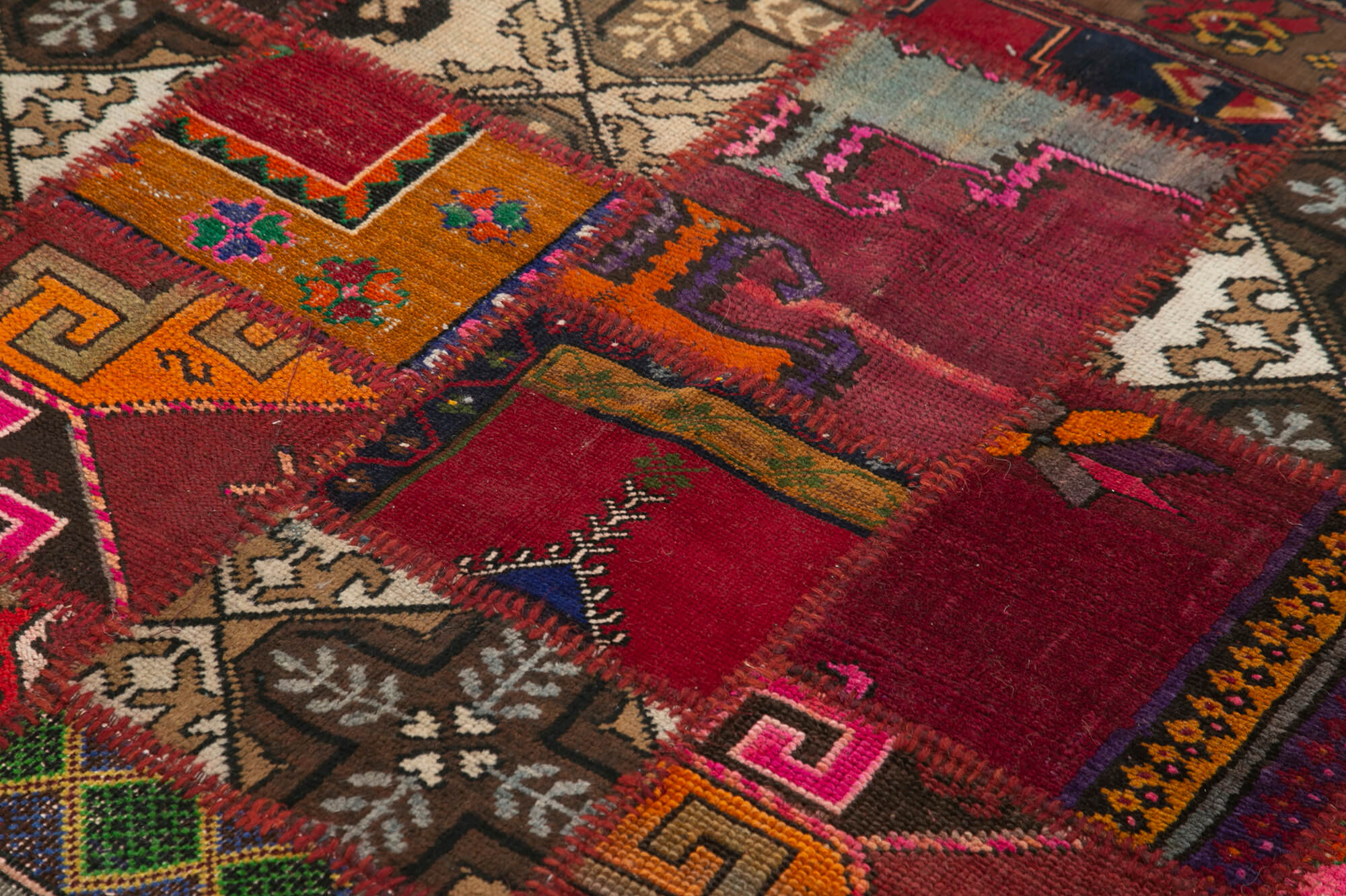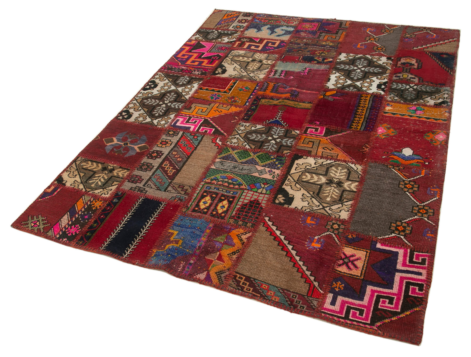 Kirk Yama Red Patchwork Cotton Wool Handmade Area Rug 4'10'' x 6'10''