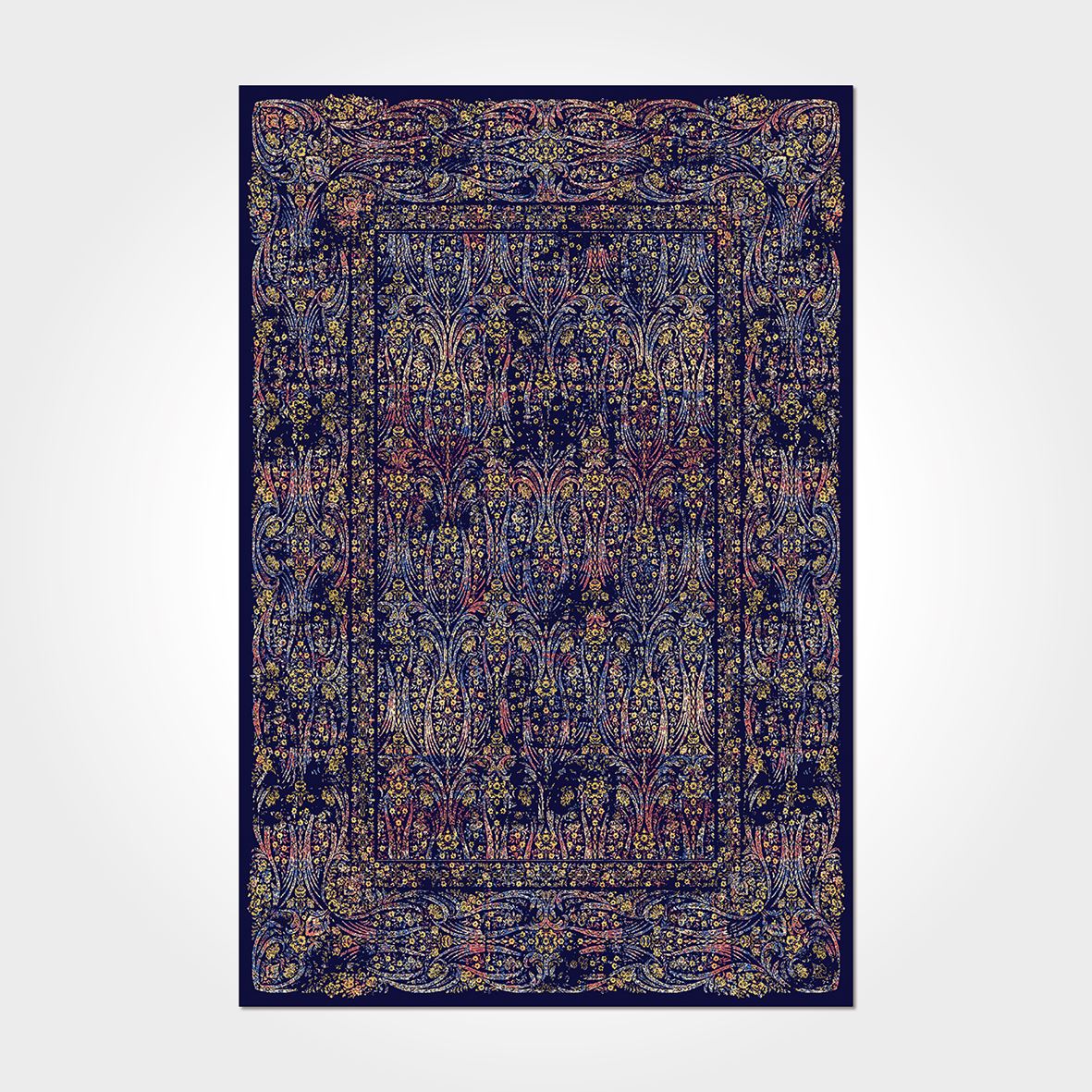 Choose this customizable digital rug to add an elegant navy frame carpet touch to your home while benefiting from the softness of chenille cotton yarns combined with the strength of polyester chenille carpet fibers. Whether used as a flatweave floor covering in your kitchen or as a living room rug centerpiece, it delivers lasting style, comfort, and safety. The framed style carpet design enhances your space with clean lines and rich color contrast.