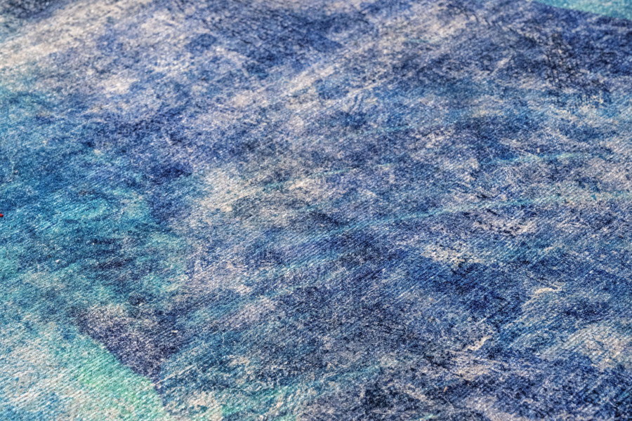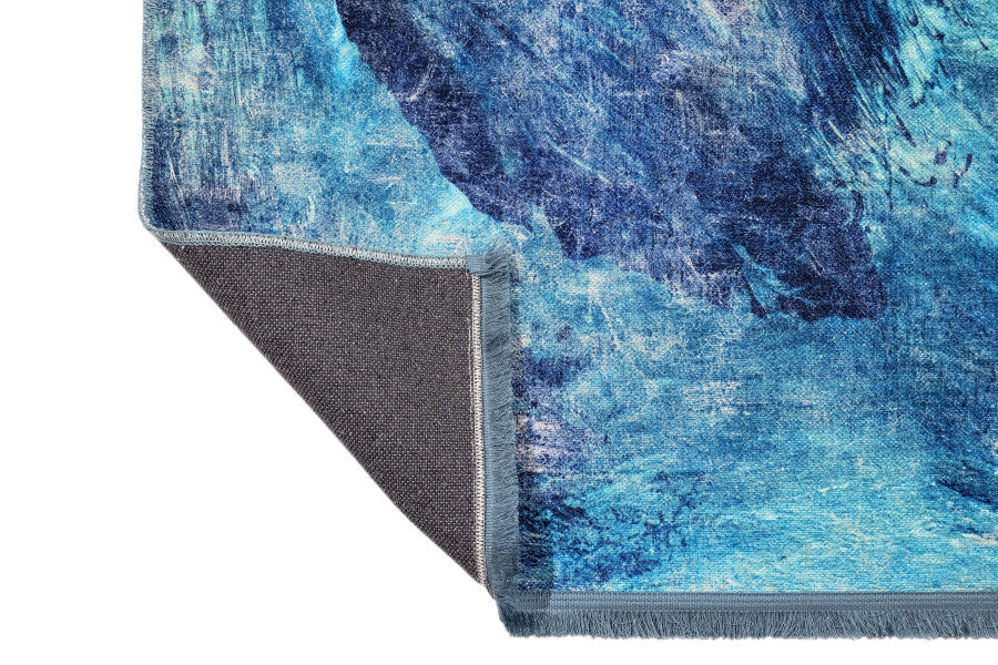 Modern Blue Area Rug – Cotton Chenille Washable Digital Print Carpet for Living Room
