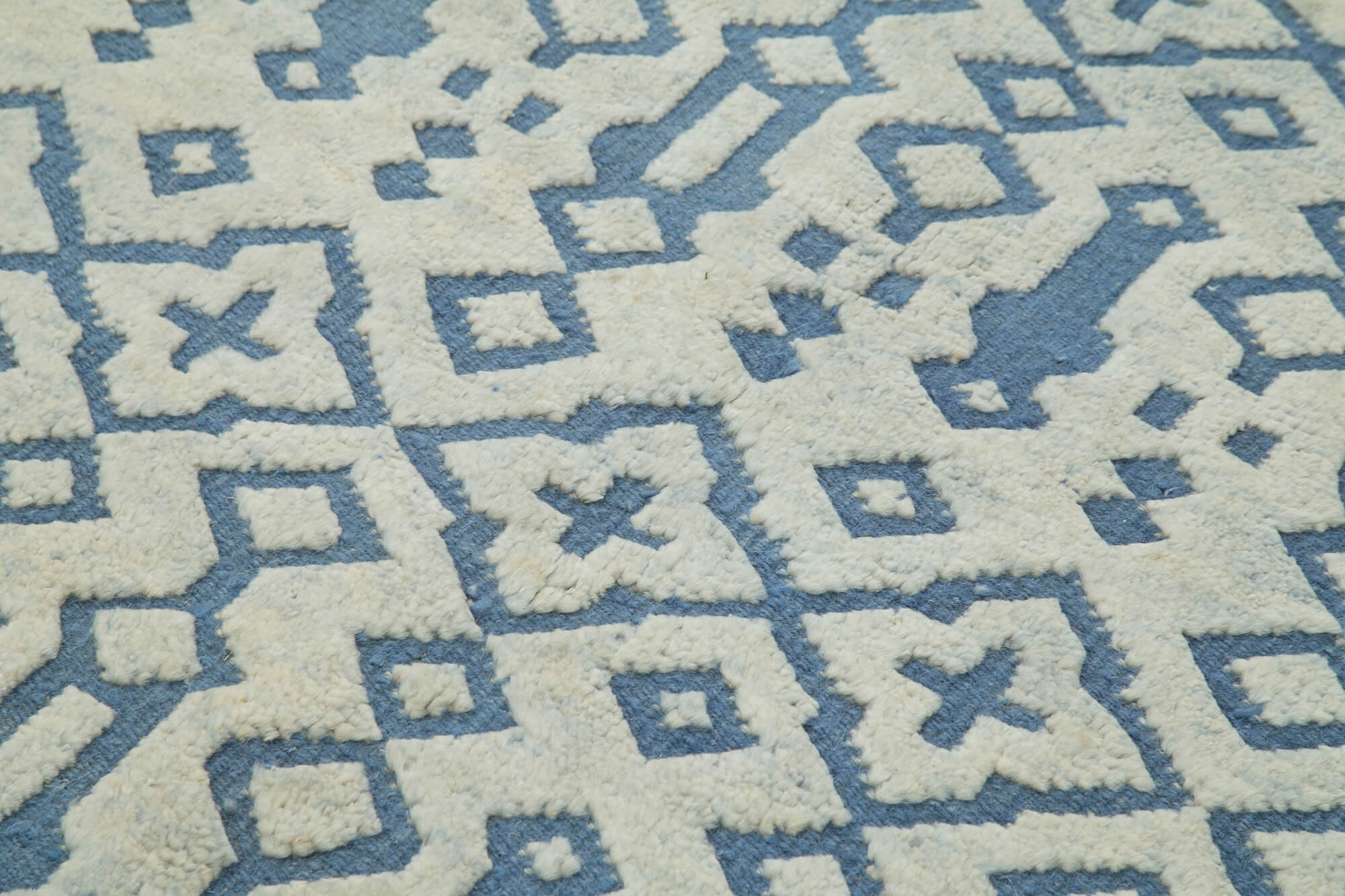 Purpleocco Blue Geometric Wool Cotton Handmade Rug 5'0'' x 8'0''