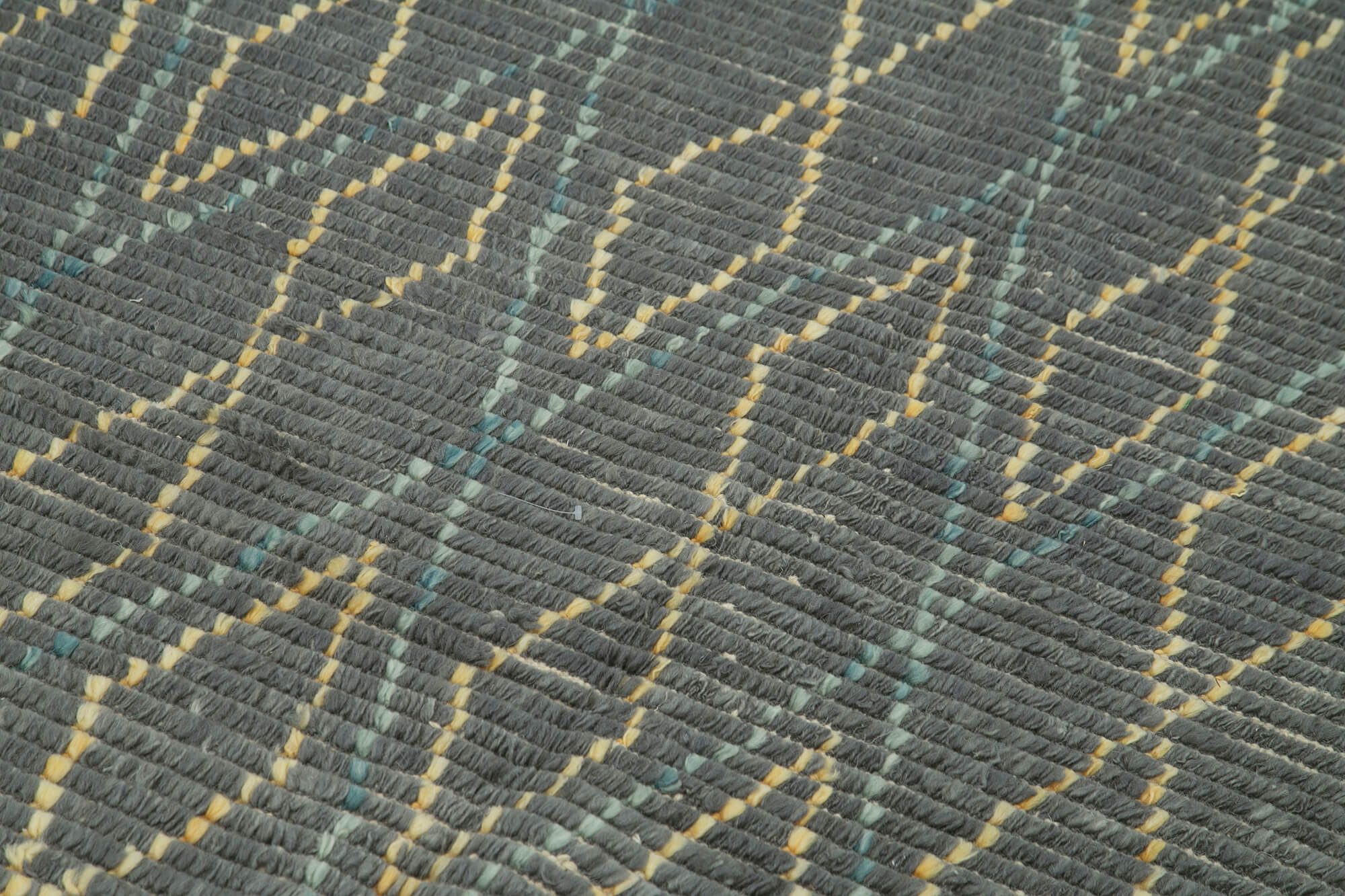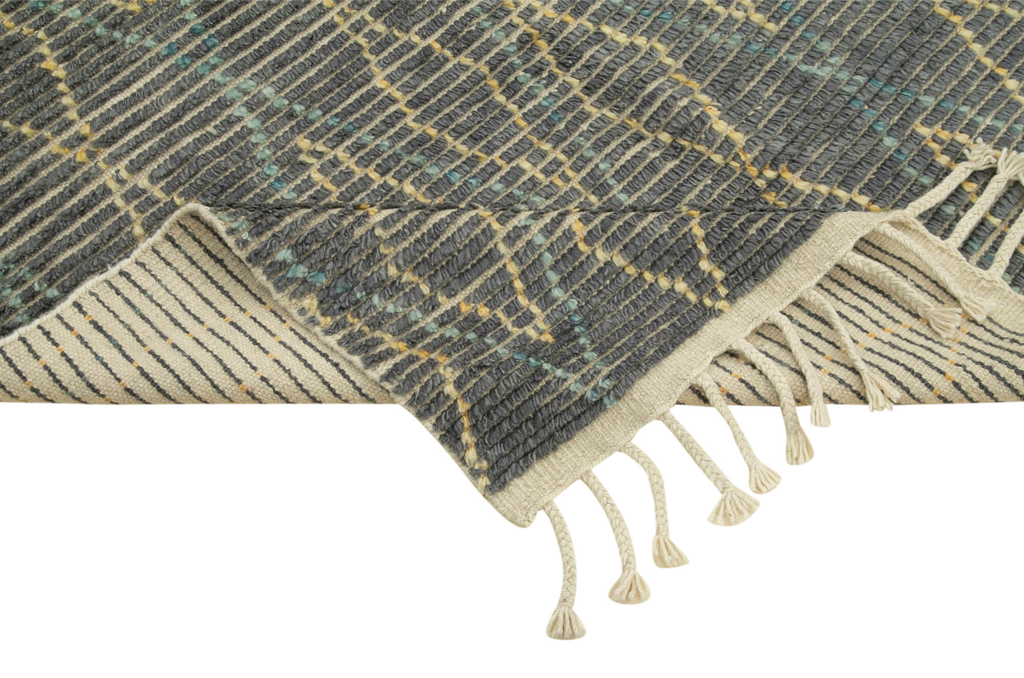 Purpleocco Grey Geometric Wool Cotton Handmade Rug 5'0'' x 8'0''
