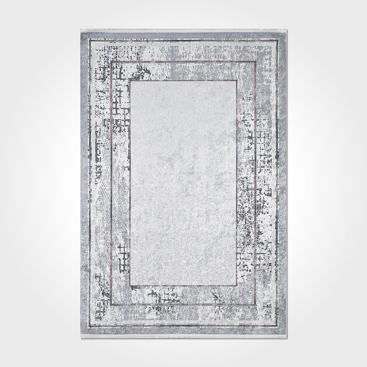 Chenille Cotton Area Rug – Washable Non Slip Grey Frame Rug with Soft Texture