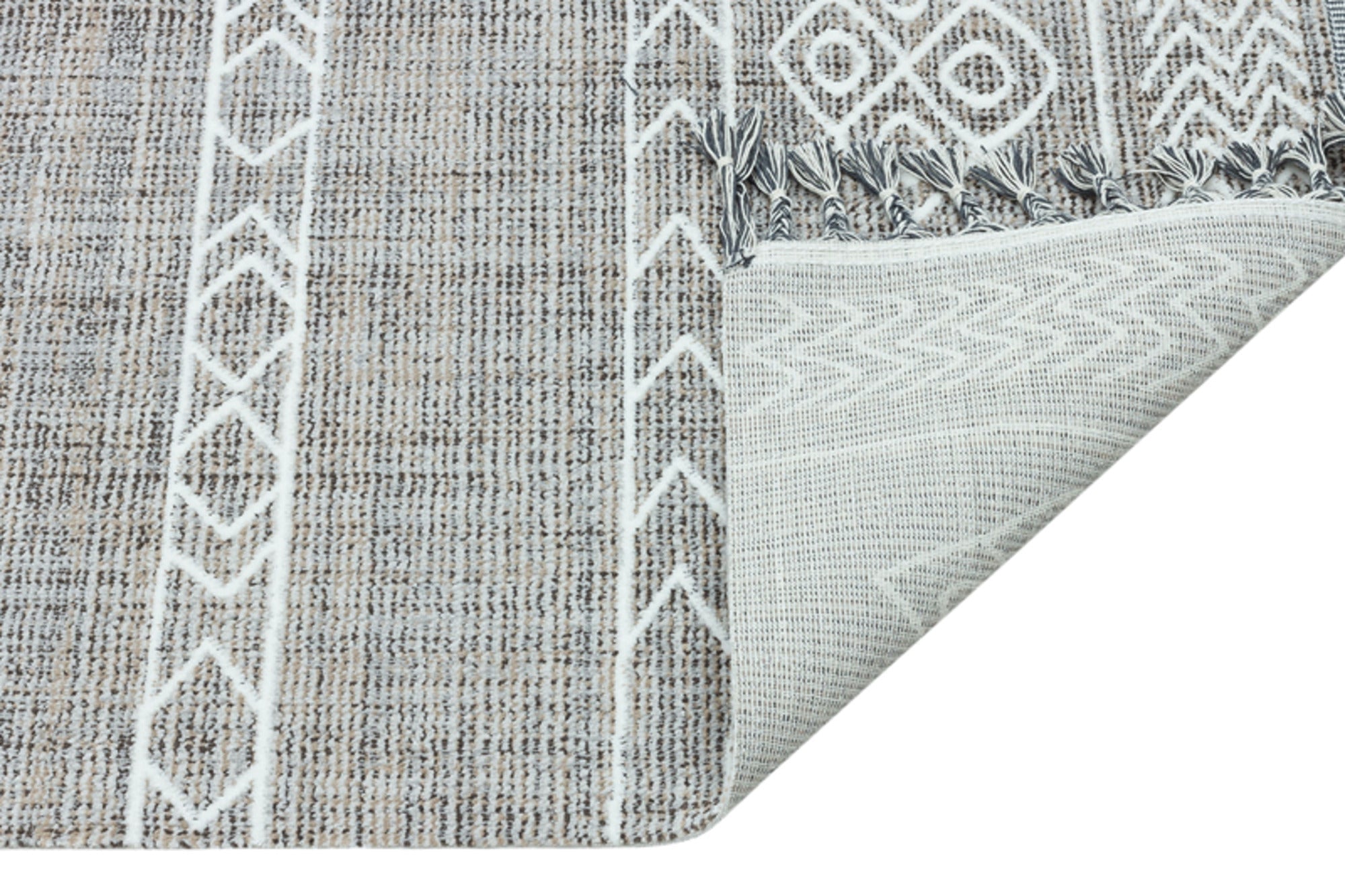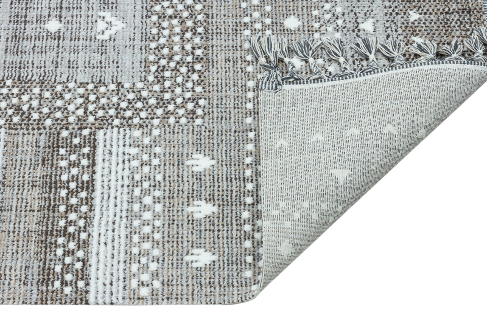 Crafted with precision using advanced weaving techniques, this machine woven carpet combines functionality with aesthetic appeal. The brown geometric pattern complements various décor styles, while the cotton yarn material provides softness underfoot. Its resistance to shedding ensures minimal cleanup, making it perfect for households with pets or children. Designed to work efficiently over underfloor heating systems, this rug contributes to a warm and cozy atmosphere.