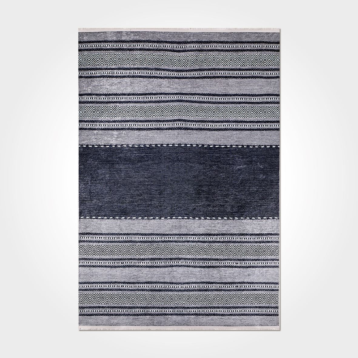 Striped Chenille Area Rug - Washable Non Slip Anthracite Flatweave Carpet