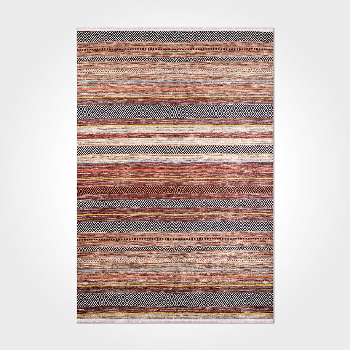 Striped Chenille Area Rug – Washable Non Slip Cotton Polyester Carpet with Soft Texture