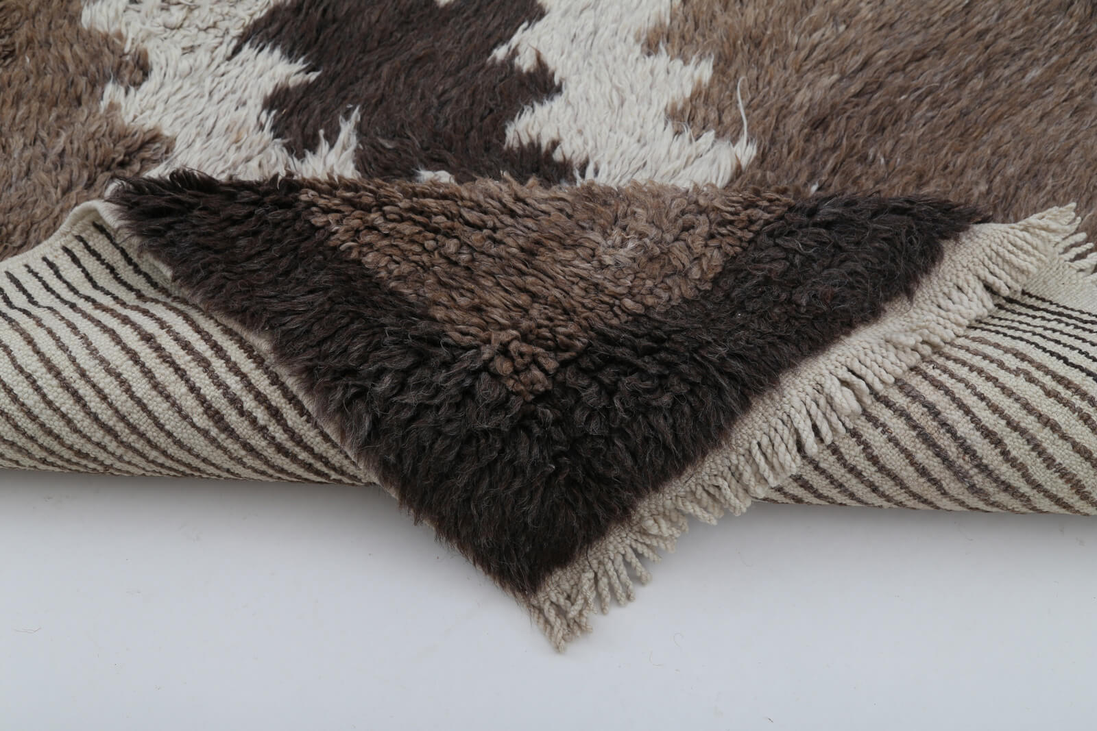 This cotton wool rug offers exceptional durability and softness, making it ideal for high-traffic areas while providing comfort underfoot. The brown wool carpet's geometric area rug design adds a timeless aesthetic that complements both modern and classic interiors. Agacan rugs are known for their quality craftsmanship and traditional hand knotted construction, providing long-lasting beauty and resilience.