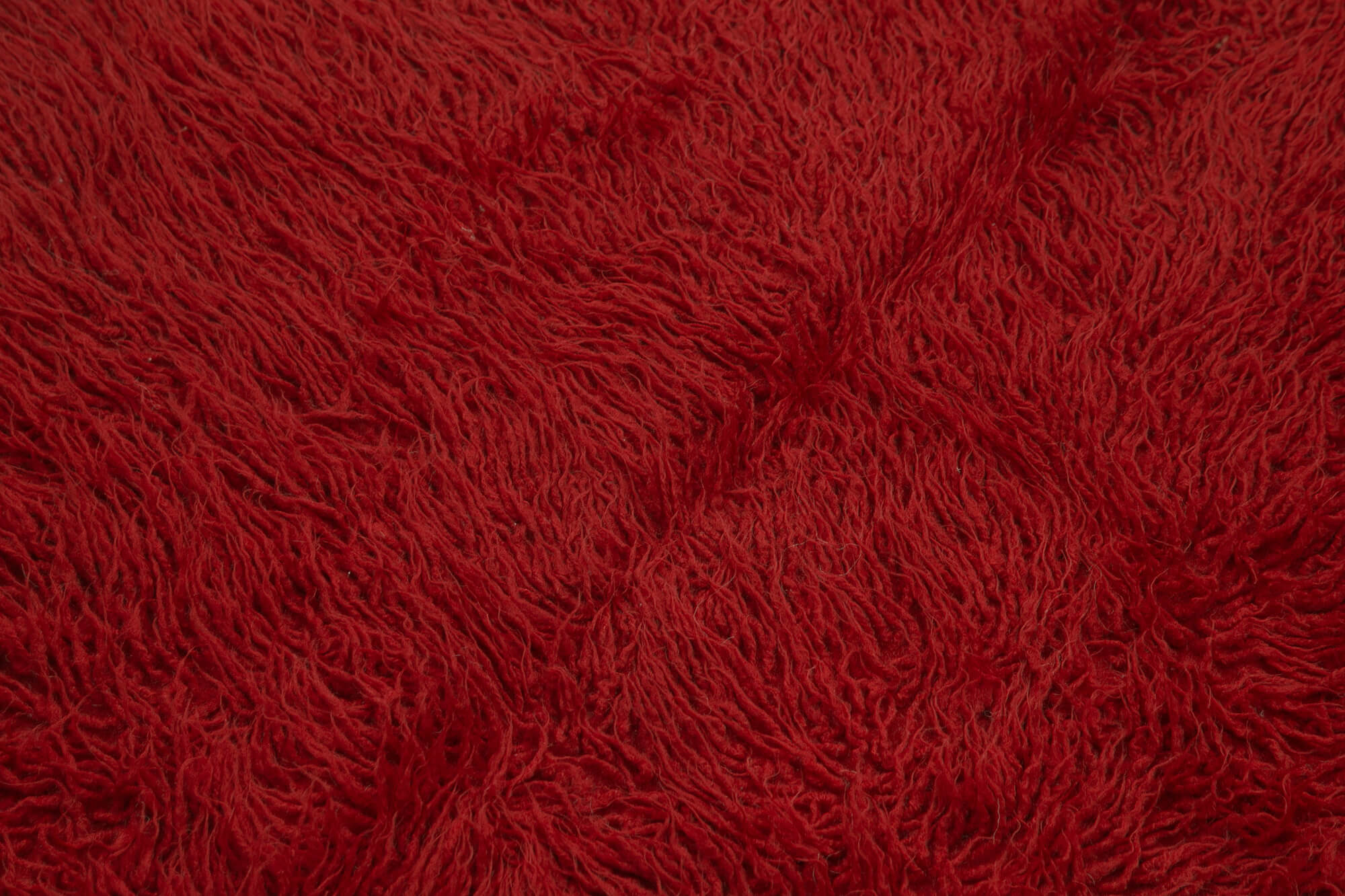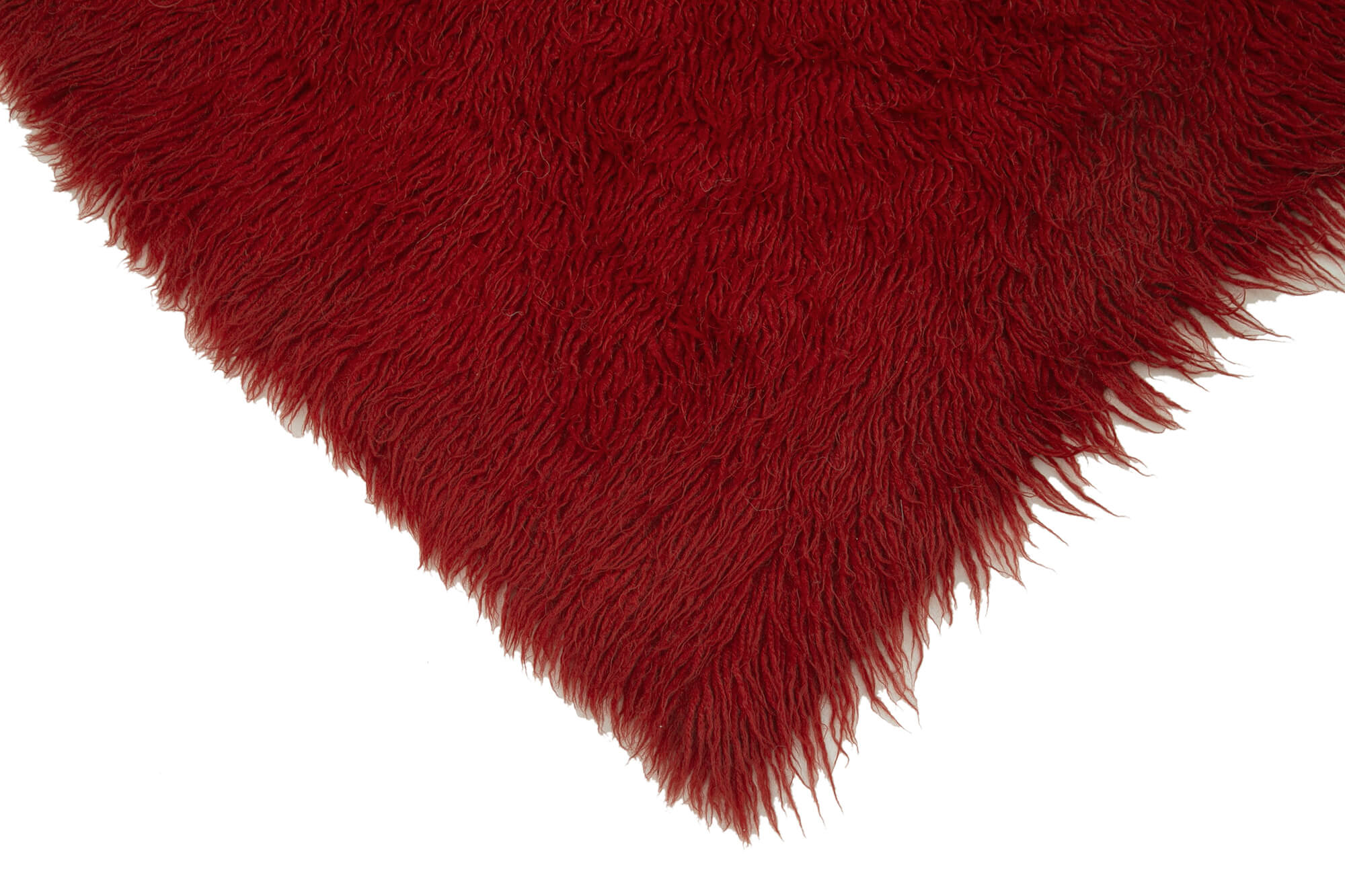 Handmade Area Rug – Red Shaggy Cotton Wool Vintage Turkish Carpet 4'6''x6'7''