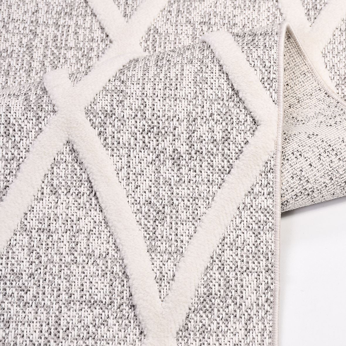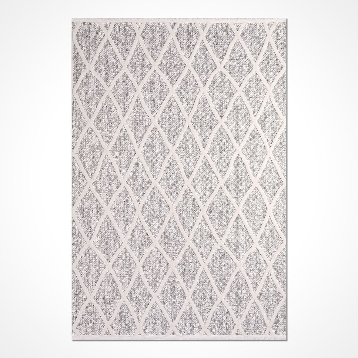 The Grey Geometric Area Rug from the Crea rugs collection is a machine made rug designed to enhance your modern living room with style and durability. Crafted from 100% polyester yarn, this polyester area rug features a high stitch density rug construction with 200,000 stitches per square meter and an 8mm pile height carpet that provides comfortable cushioning underfoot. Its geometric pattern rug design adds a contemporary floor mat look that complements any hallway area carpet or living space.