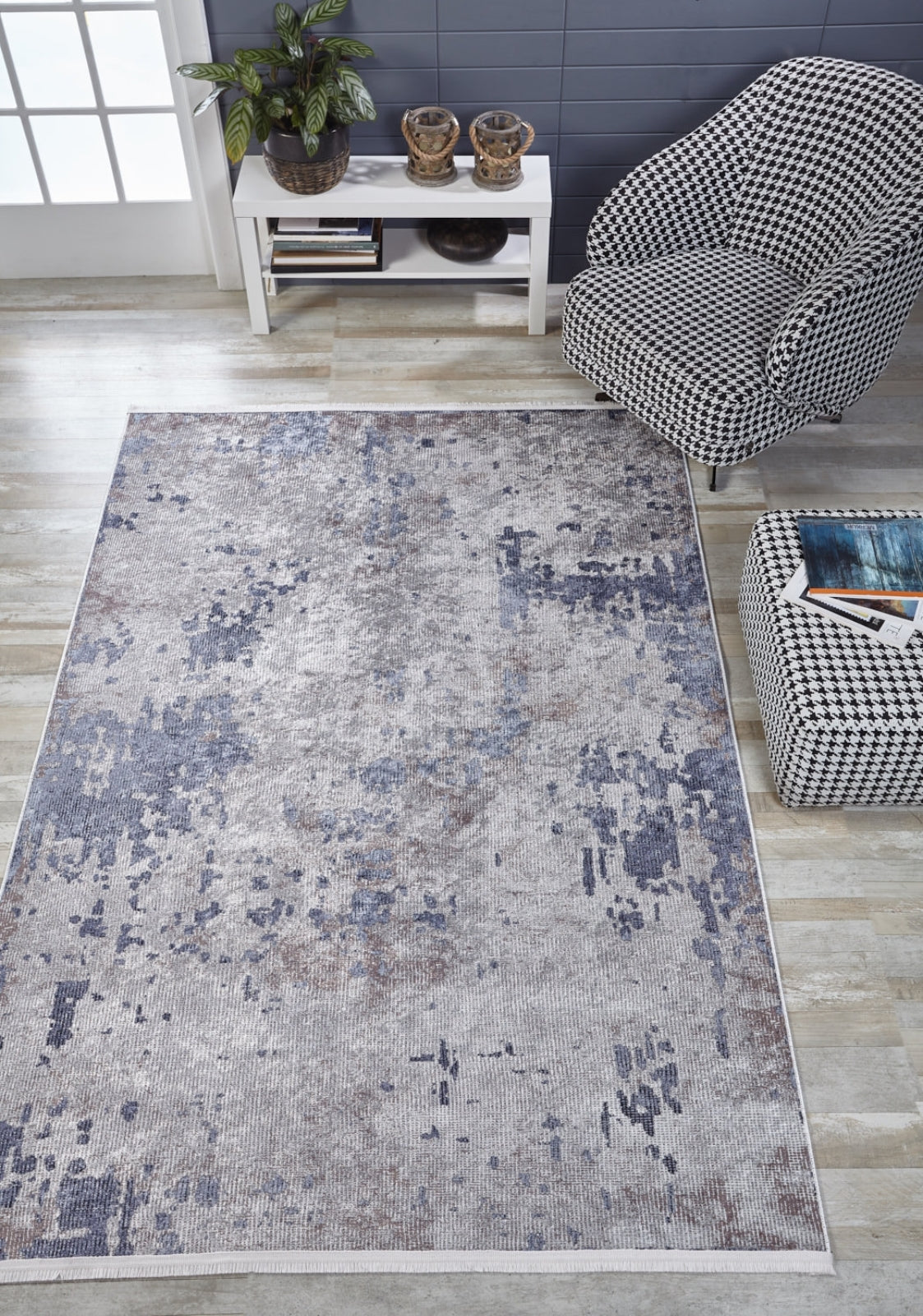 Modern Digital Print Rug – Grey Area Rug with Non Slip & Antibacterial Features