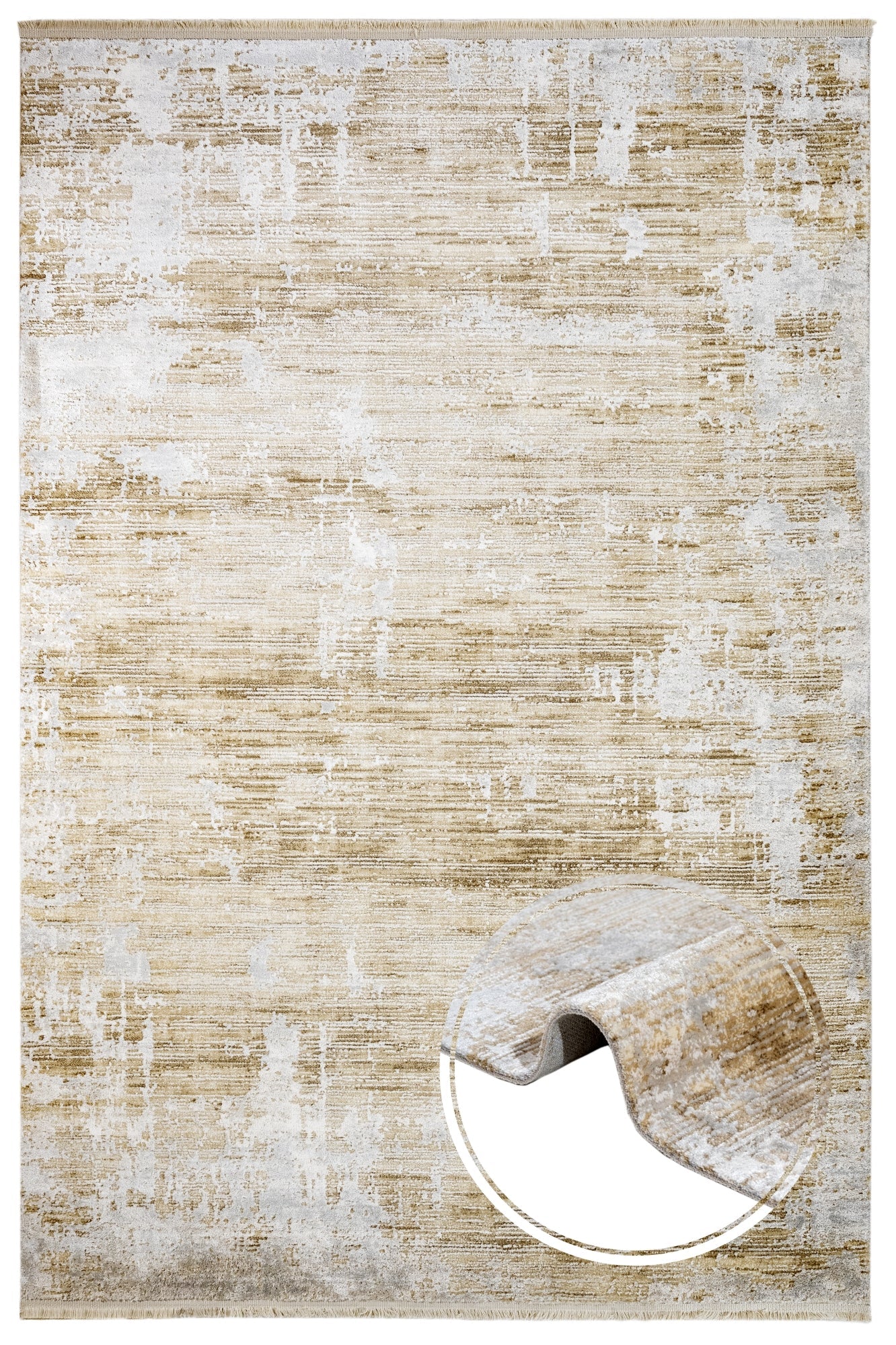 Modern Area Rug – Beige Machine Made Rug with Fringed Edges | Durable Acrylic Carpet