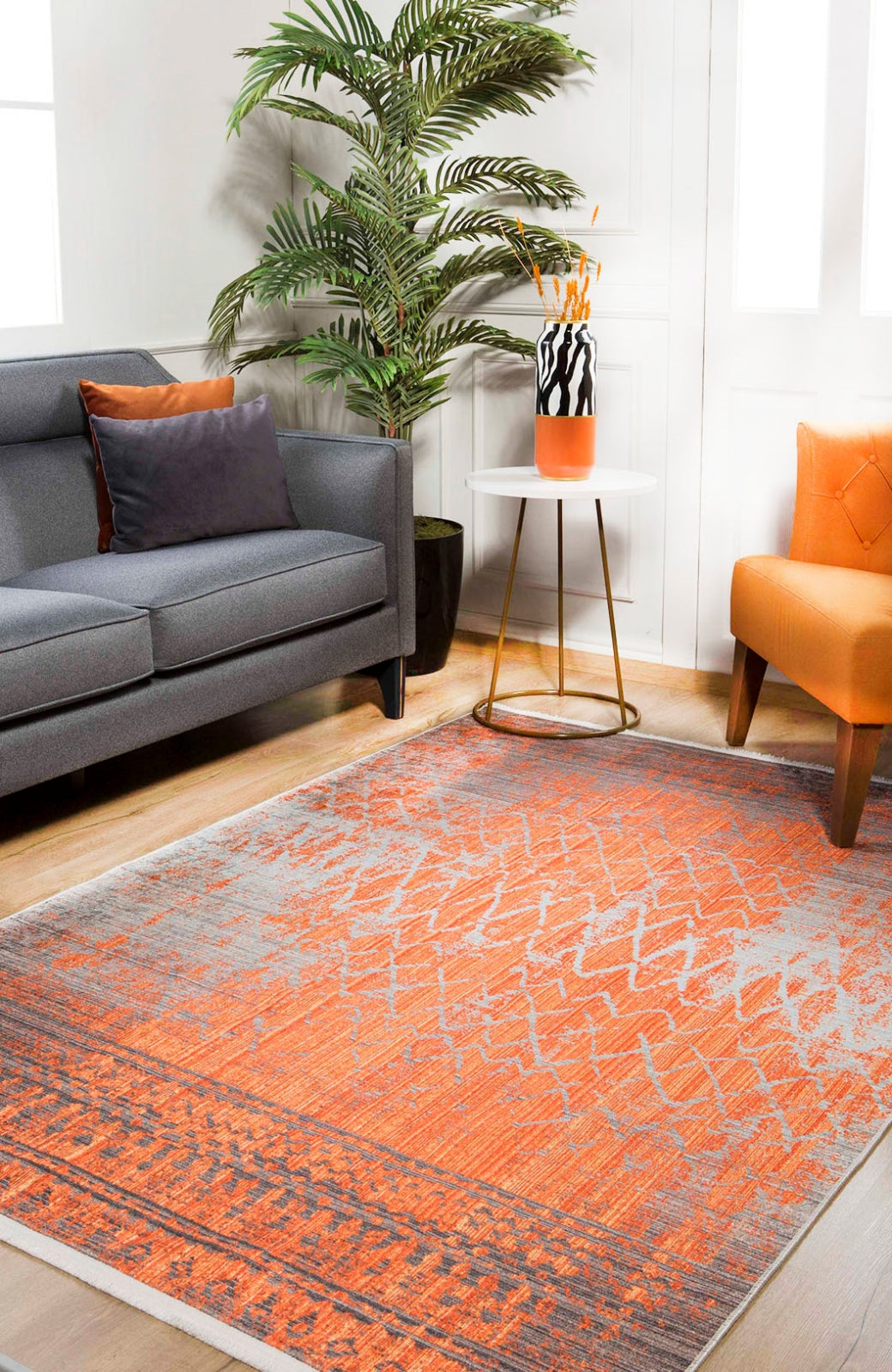 Modern Digital Area Rug – Orange Print Carpet | Non Slip & Antibacterial Washable