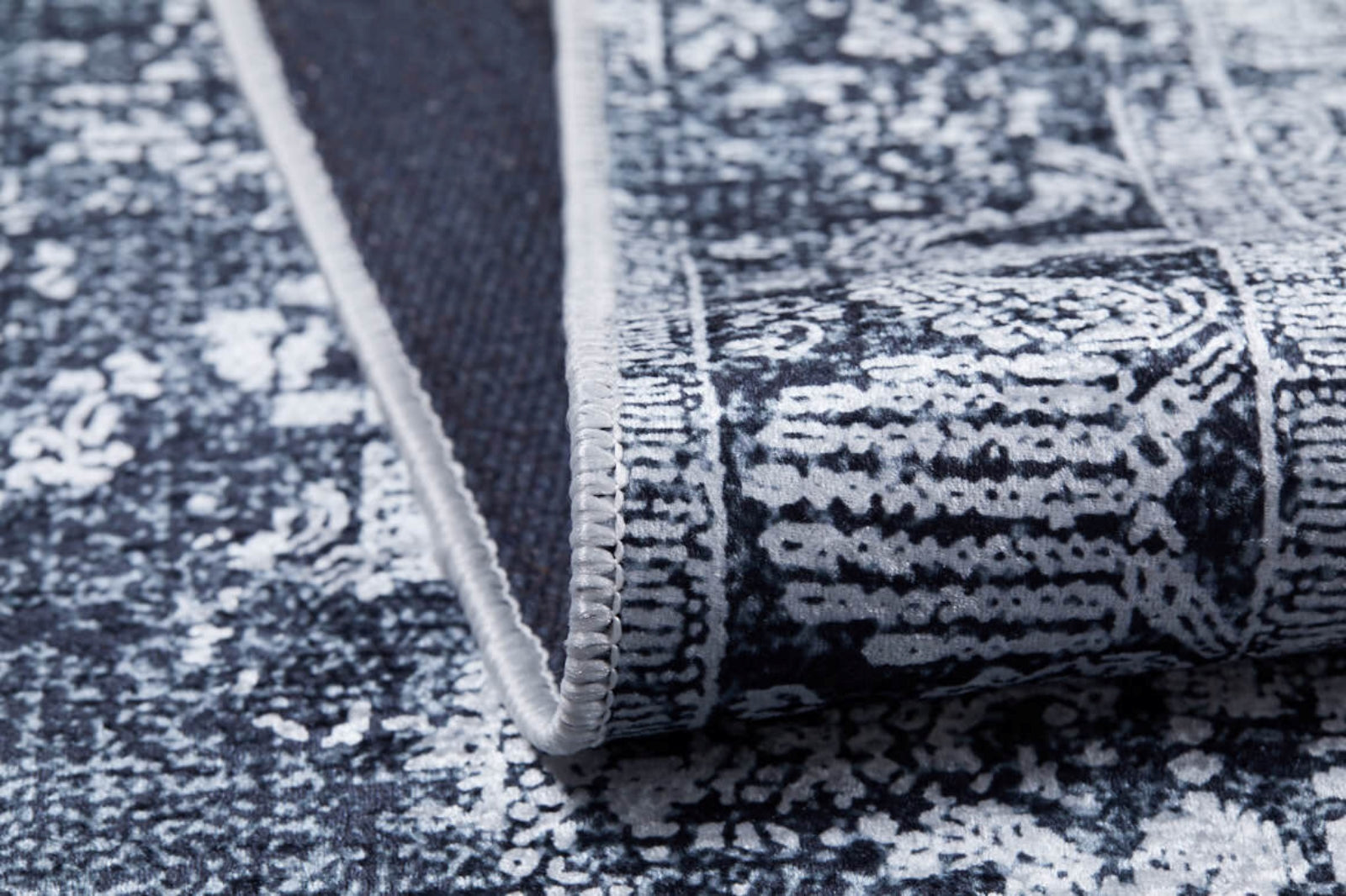 - Digital print rug with vibrant anthracite carpet tones that resist fading