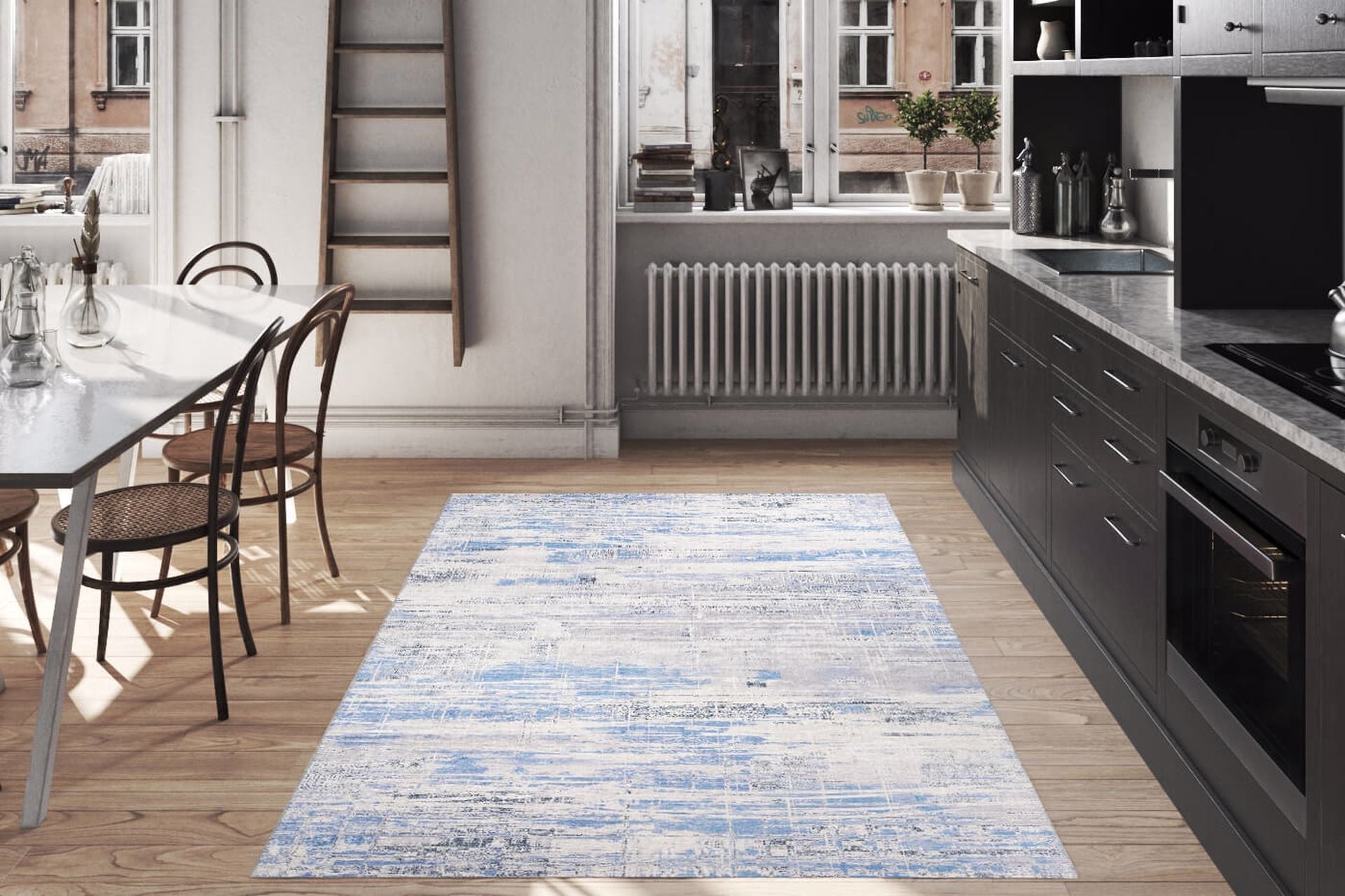 - Blue area carpet shade that complements modern interior décor