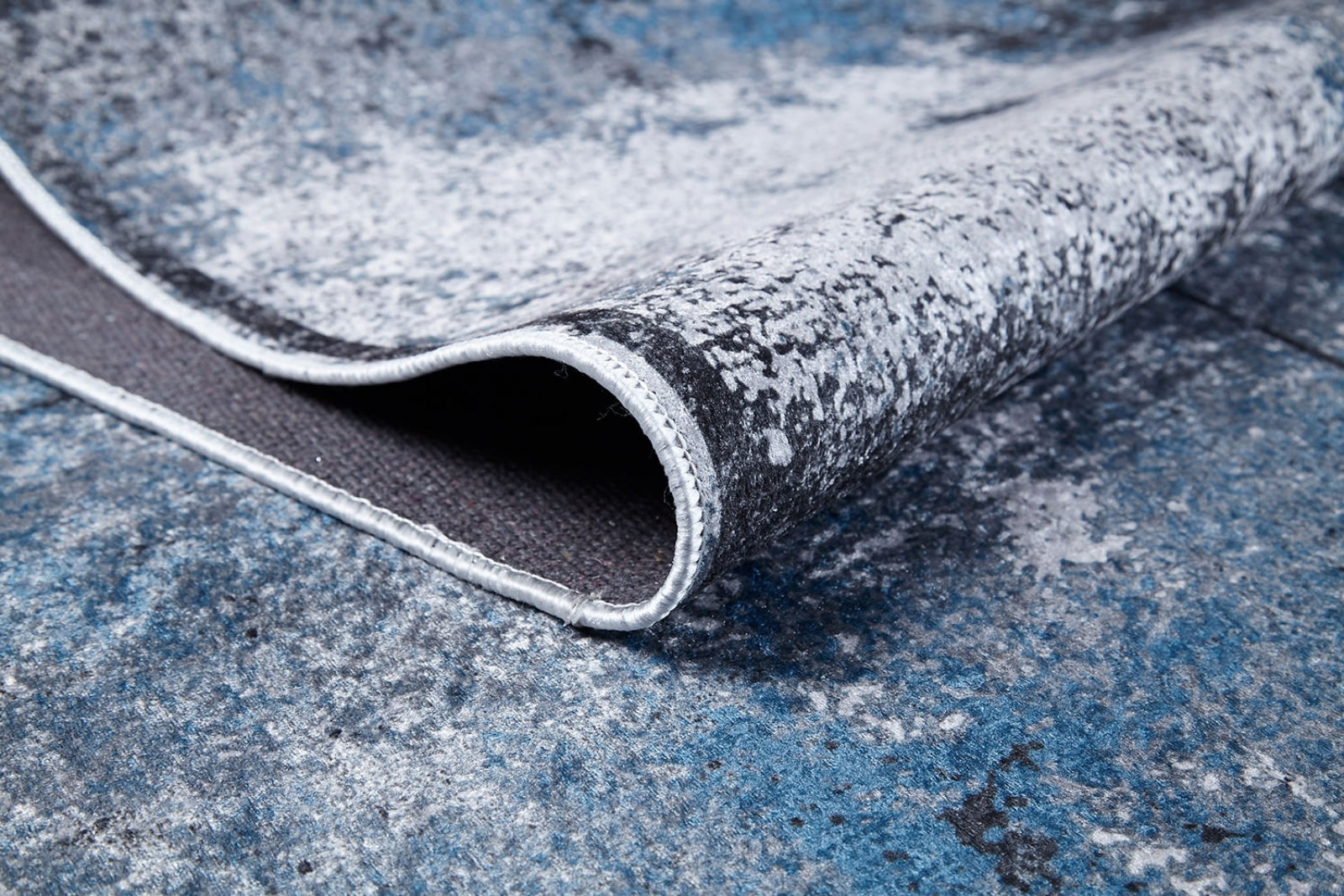 Easy to clean and maintain, this washable area rug can be machine washed or spot cleaned without damaging the digital print or fiber integrity. Its contemporary floor covering design complements modern interiors with a sleek blue color palette that adds depth and style. Whether placed as a living room rug or hallway floor mat, it elevates your home's ambiance while offering practical benefits.