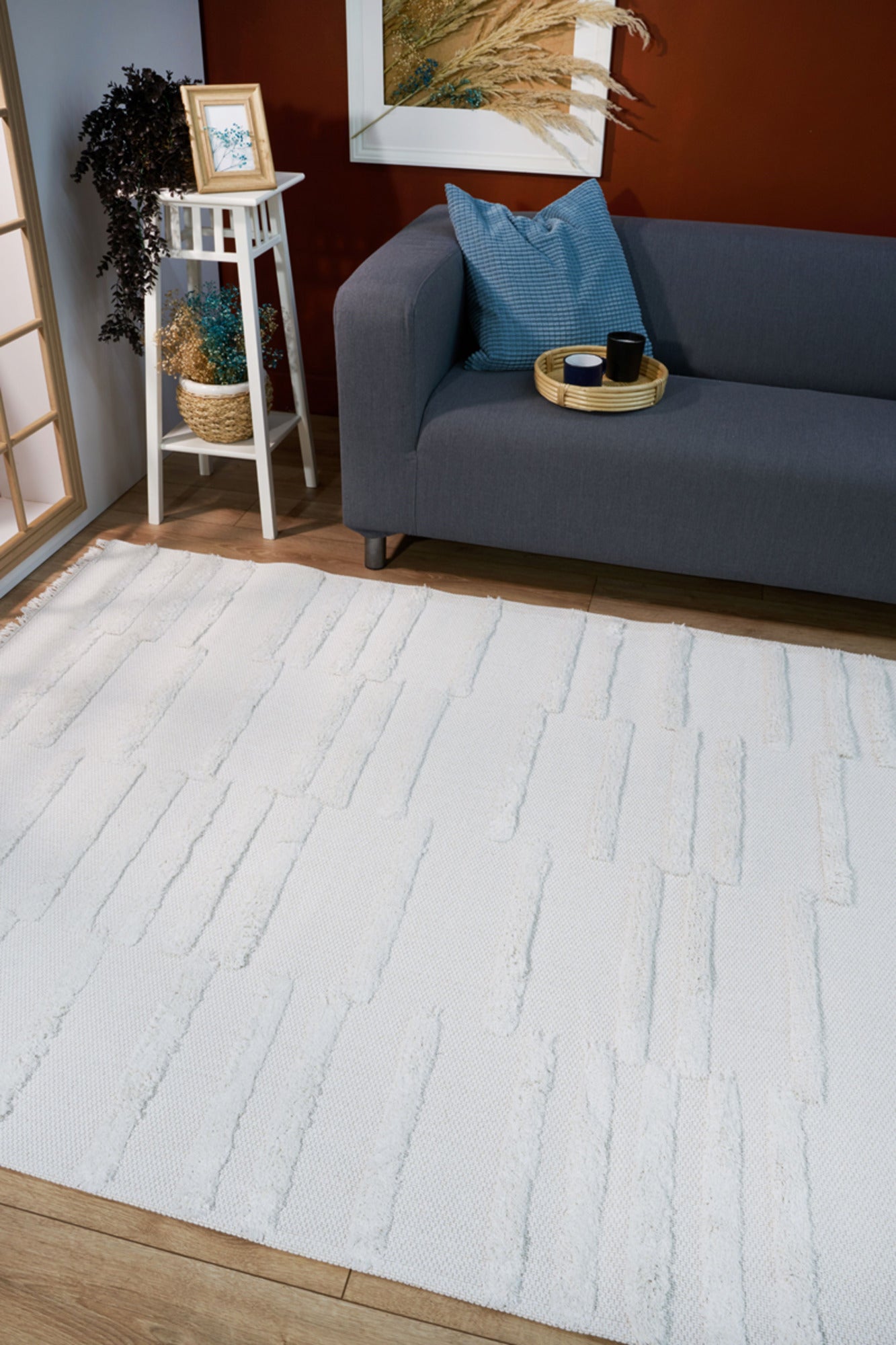 Modern Area Rug – Machine Made Cream Cotton Yarn Carpet for Living Room