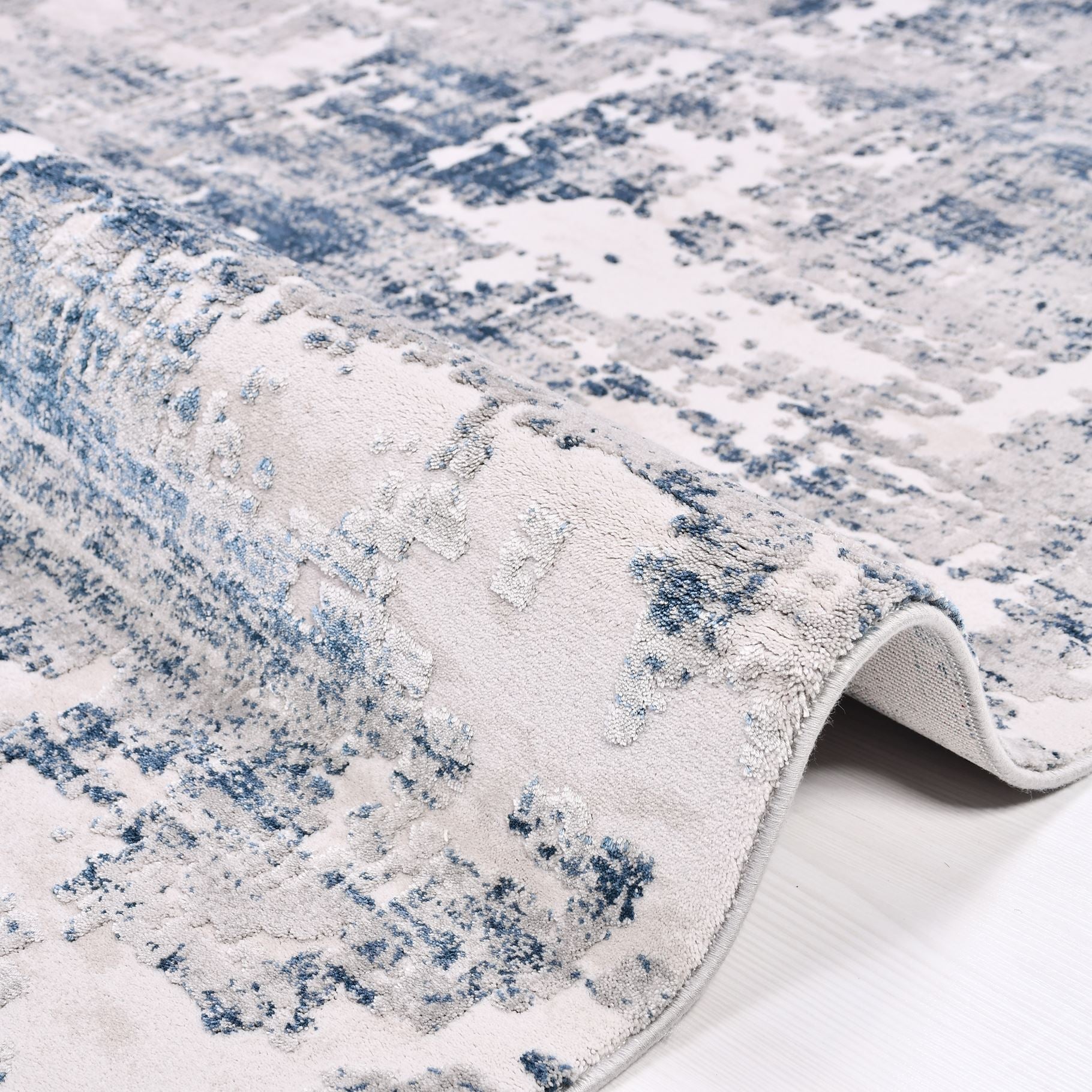 - Modern area rug style in grey blue tones to complement contemporary interiors
