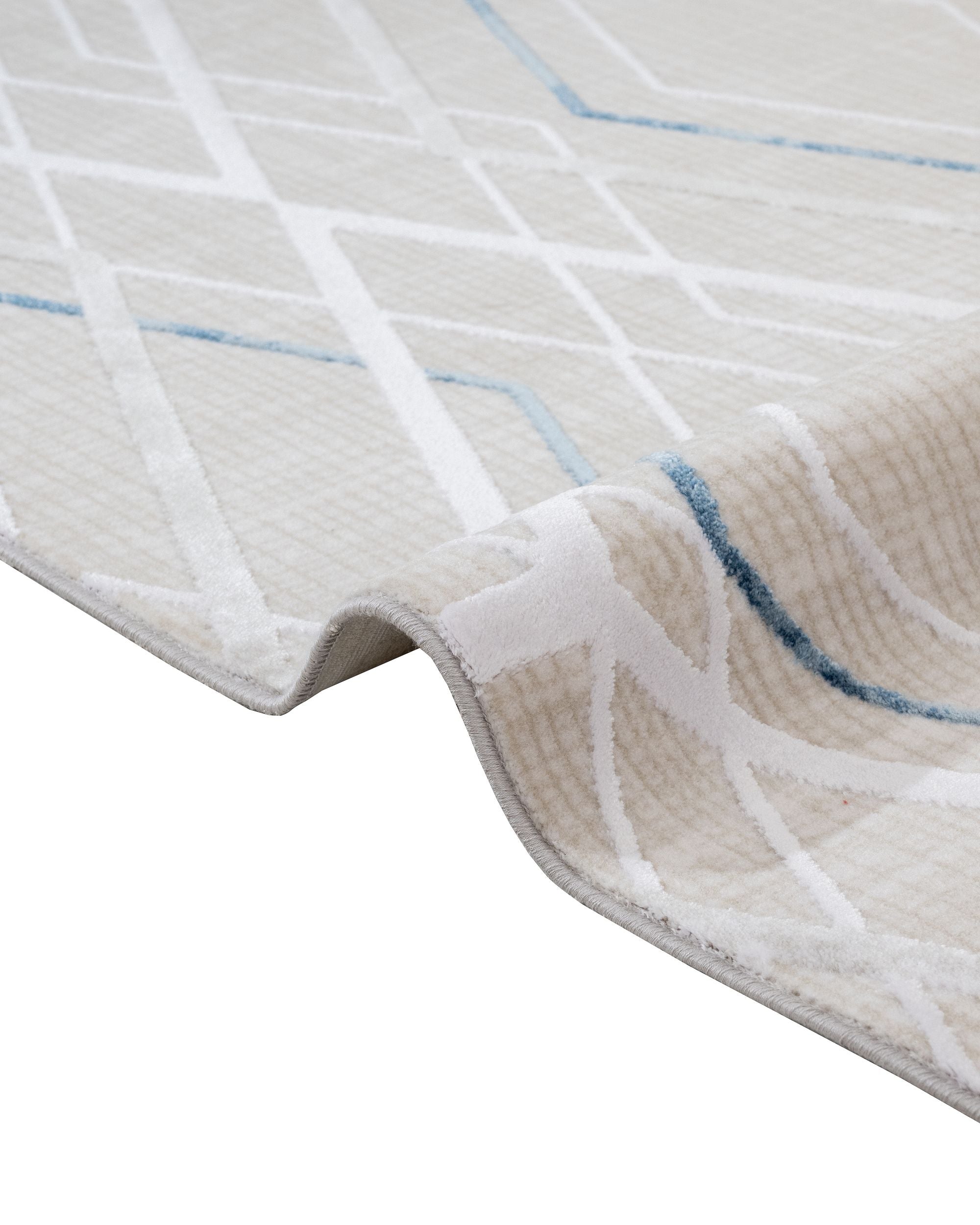 The Blue Geometric Area Rug is a machine made carpet designed to enhance any modern living room with its striking geometric pattern carpet and contemporary style rug appeal. Crafted from premium acrylic, this acrylic area rug offers a soft yet durable floor covering that refreshes your space while standing up to daily wear. The fringed edge rug design adds a stylish home carpet touch, giving your room both texture and elegance. Measuring 5 feet by 7 feet, it fits perfectly as a hallway floor rug, kitchen floor mat, or centerpiece in your living area. Its machine woven textile construction ensures consistent quality and long-lasting beauty.