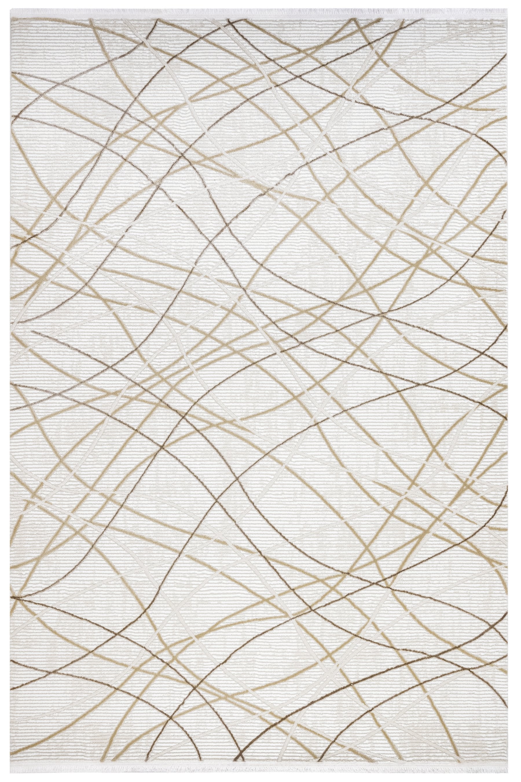 Beige Geometric Rug – Machine Made Micropolyester Area Rug with Fringed Edges
