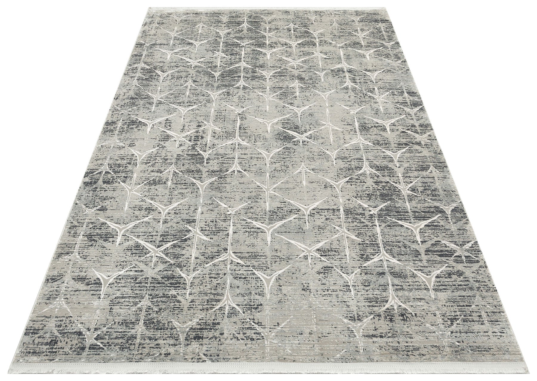 Grey Geometric Area Rug - Machine Made Rug | Overdyed Soft Touch Carpet