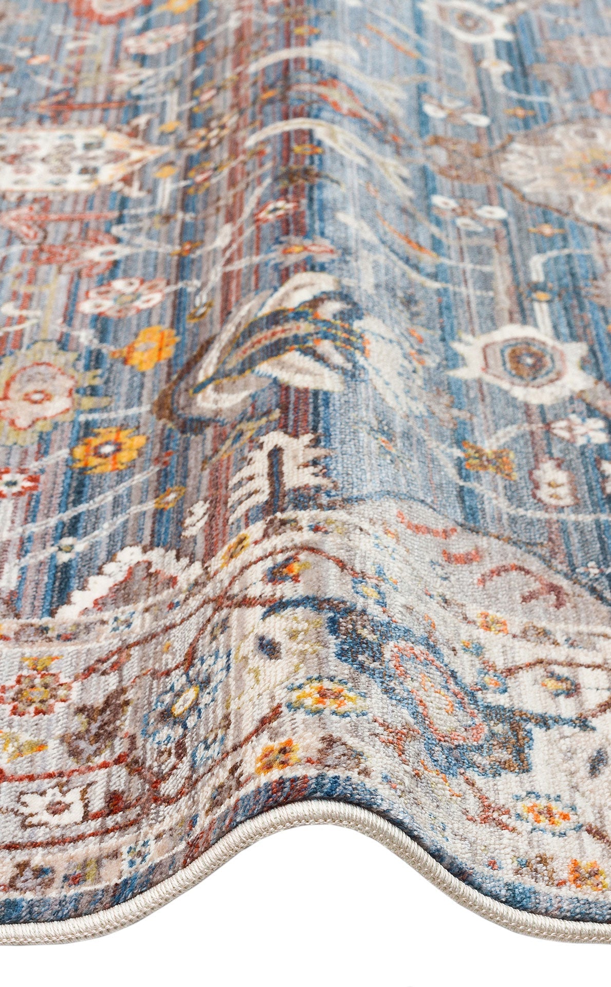 The blue area rug is a classic machine made carpet designed to bring ethnic style and modern flair to your living space while remaining dust free and easy to clean. Crafted with premium pile yarn, this soft texture rug offers a comfortable feel underfoot without producing pile dust or fluff, making it ideal for allergy-sensitive environments. Its flatweave construction ensures durability and a non slip carpet surface, perfect for high-traffic areas like hallways or living rooms. Tested for quality and backed by professional manufacturing standards, this classic area rug combines aesthetic appeal with practical benefits.