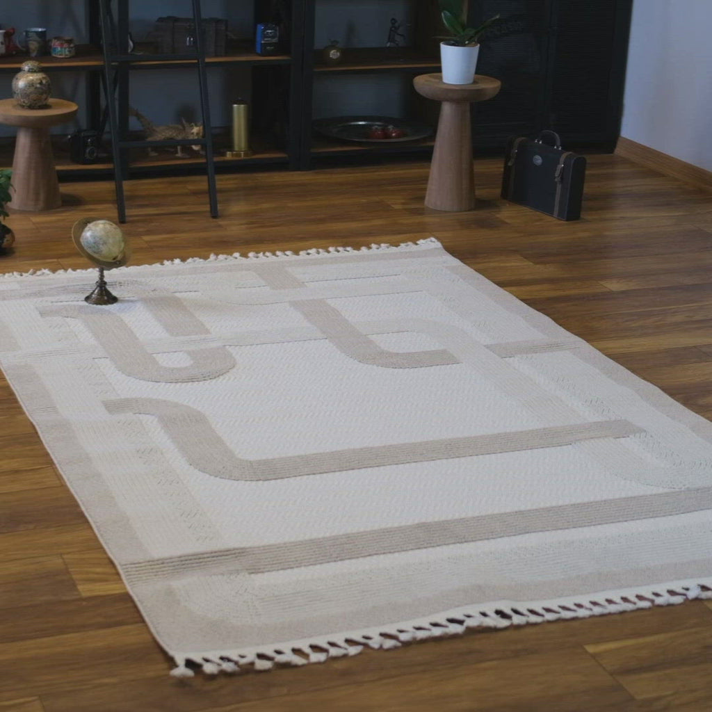 Geometric Area Rug – Machine Made Cream Carpet | Anti Slip, Easy Clean