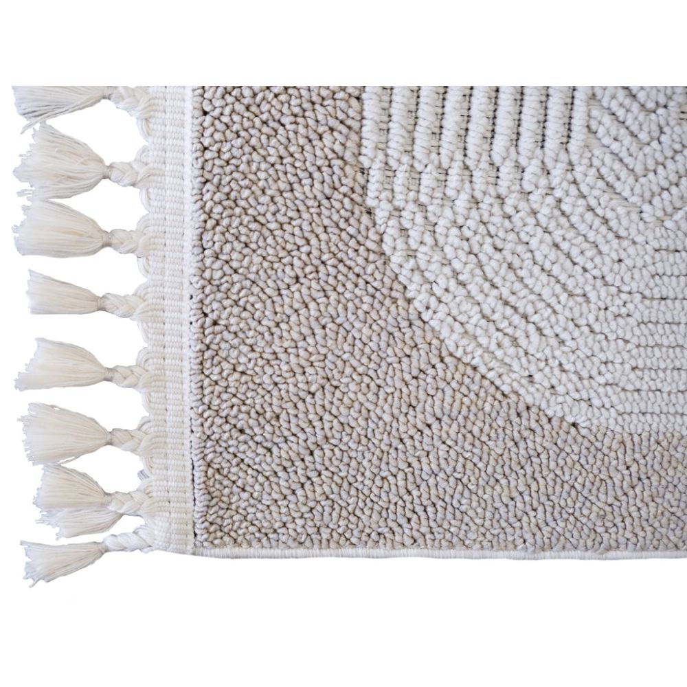 - Cream area rug color enhances light and space → brightens rooms with a neutral, versatile shade