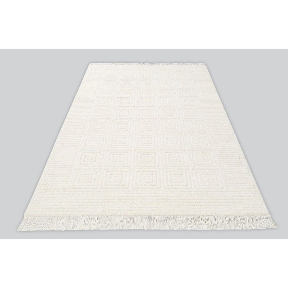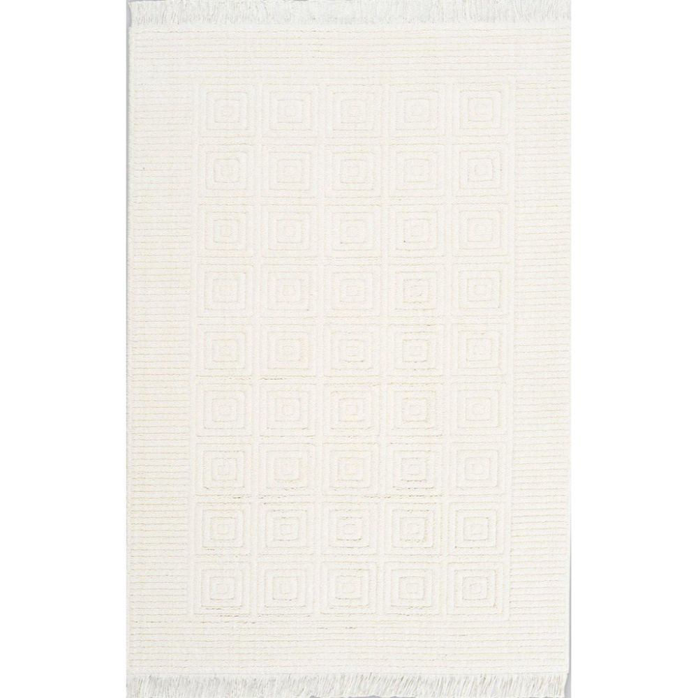 Machine Made Area Rug – Cream Geometric Polypropylene Carpet With Soft Pile