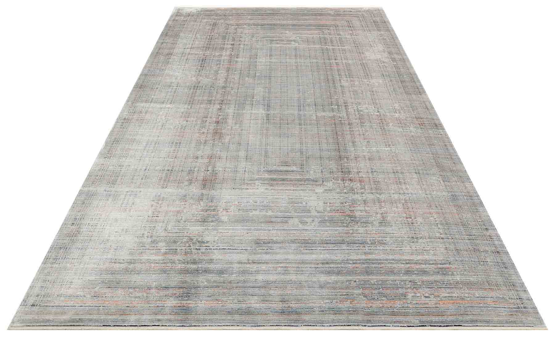 Modern Area Rug – Grey Machine Made Rug with Art Deco Frame Pattern