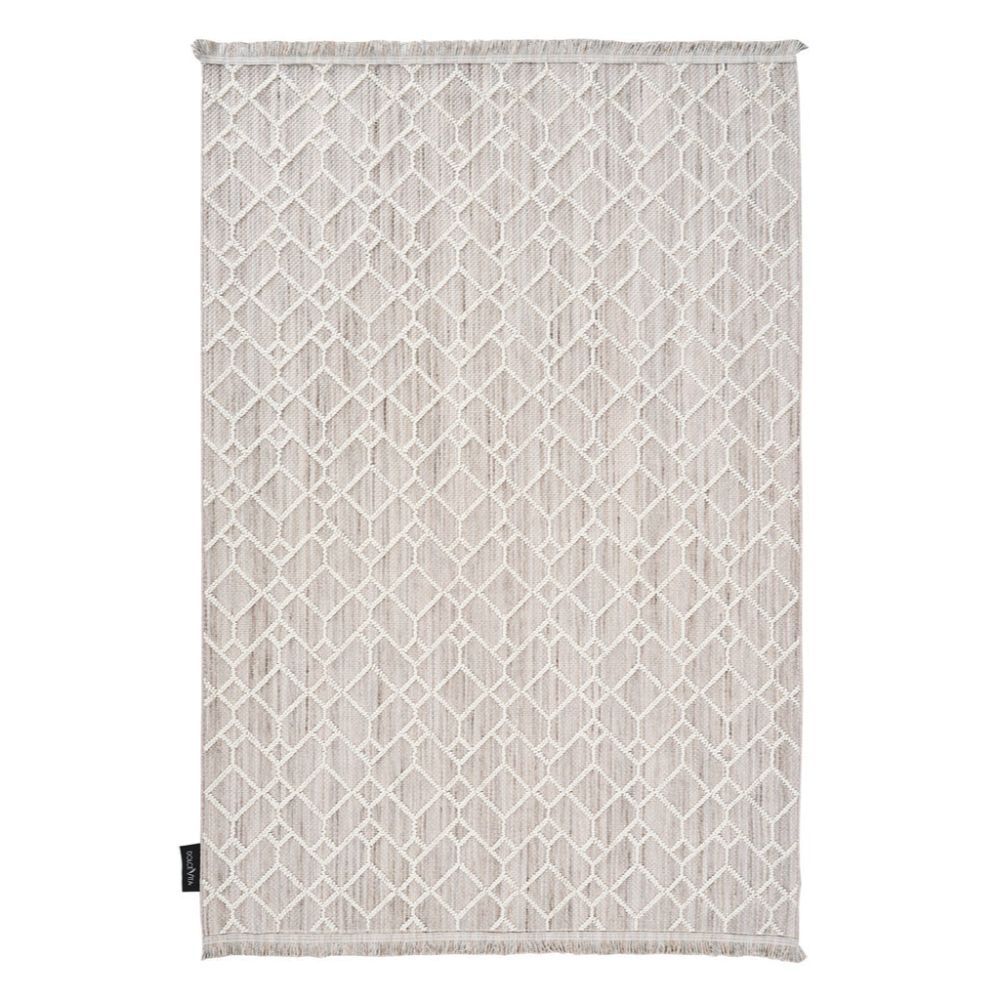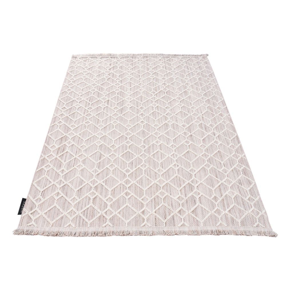 Geometric Area Rug - Machine Made Cream Bohemian Carpet Design With Non Slip