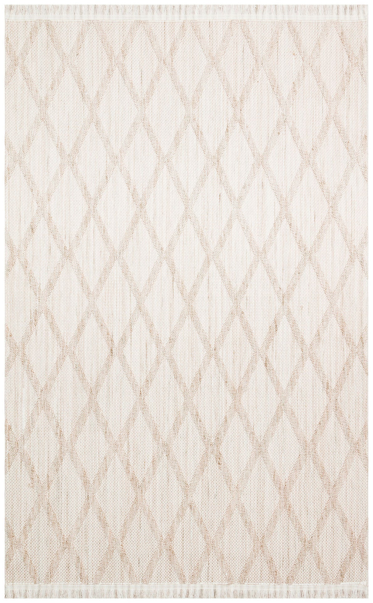 Machine Made Area Rug – Beige Geometric Flatweave Carpet by Eko Rugs