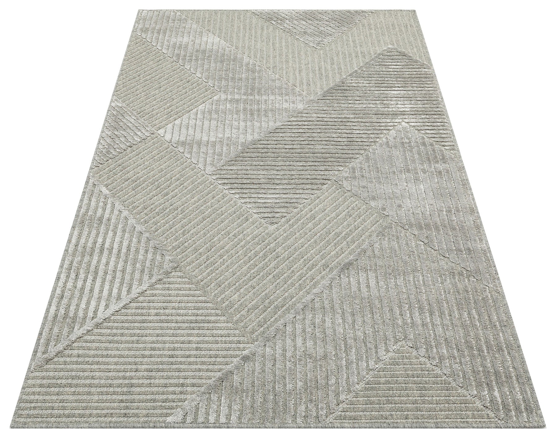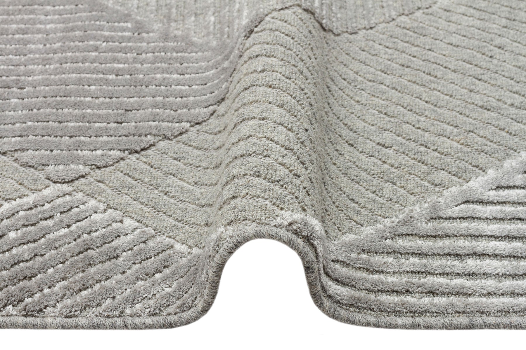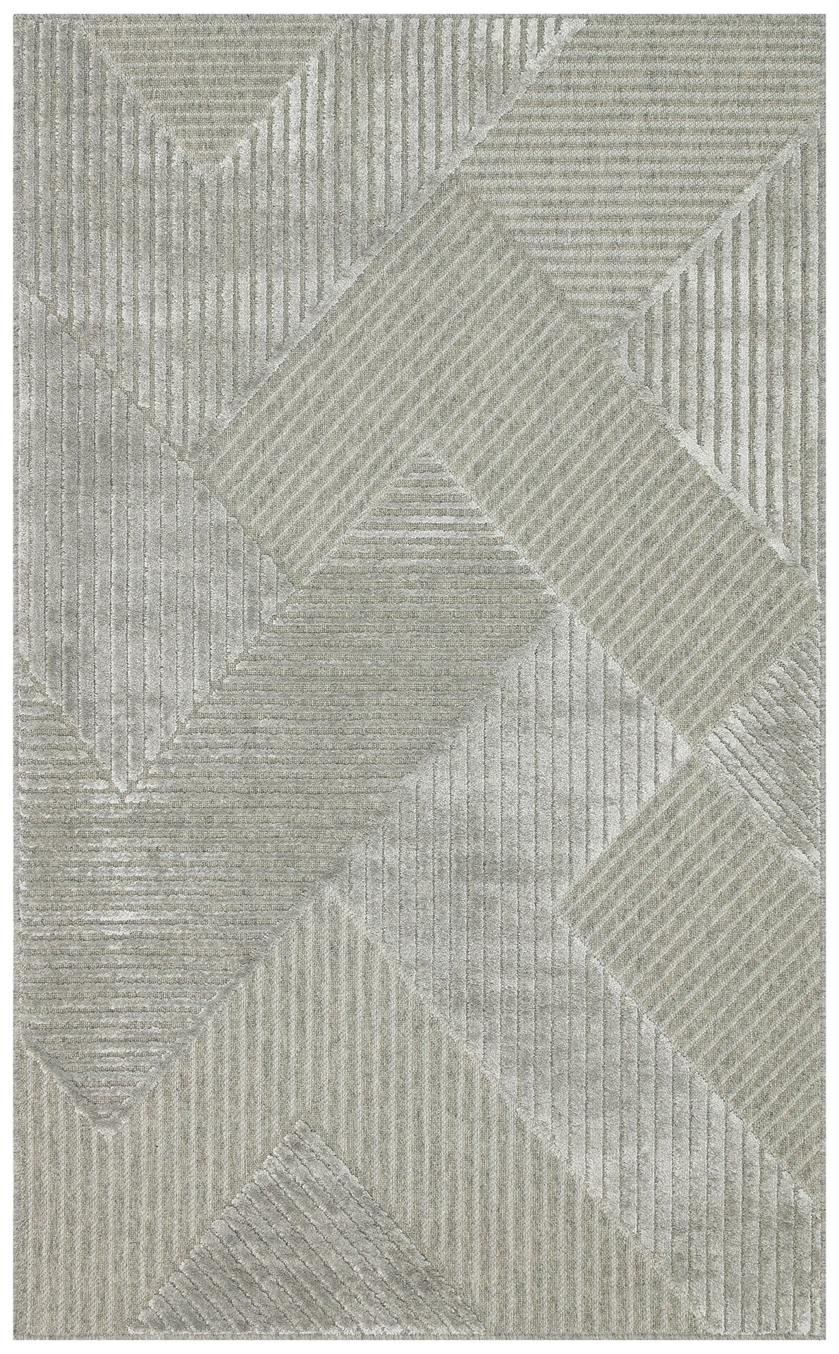 Grey Geometric Area Rug – Wool Viscose Carpet | Machine Made Modern Woven