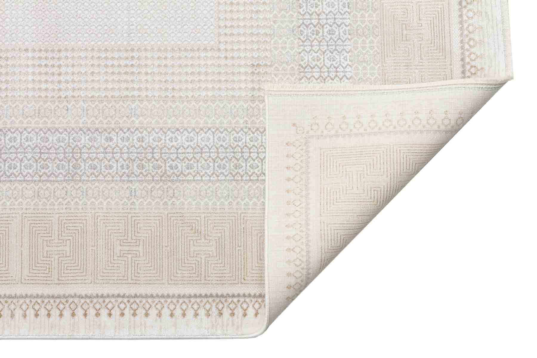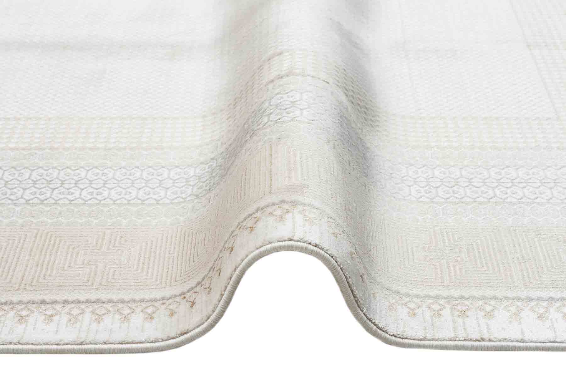 This modern area rug is a machine made rug designed to enhance your living room carpet with a geometric style rug in cream color. Crafted with dense woven carpet technology, this high quality rug offers a soft texture carpet that feels comfortable underfoot while maintaining durability. The flatweave area rug construction ensures it remains dust free carpet and easy to clean rug, making it ideal for busy households. With precise manufacturing standards by Eko, this beige living room rug combines aesthetic appeal and practical benefits for any contemporary space.