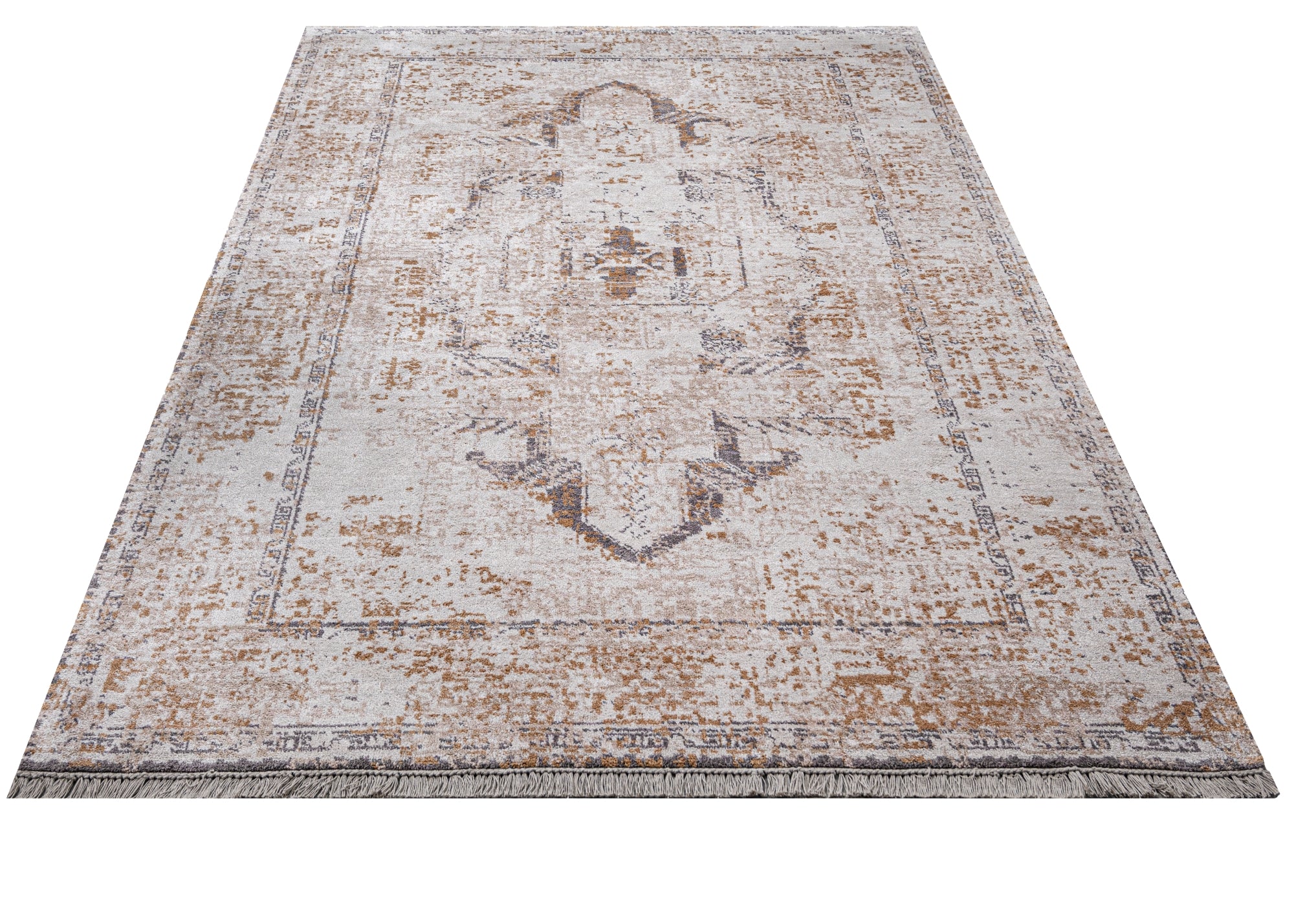 This machine made carpet combines handcrafted style carpet aesthetics with the precision of advanced manufacturing, delivering an elegant floor covering that is both stylish and practical. The viscose material provides a silky texture that enhances comfort underfoot while maintaining durability for everyday use. The cream medallion design adds a sophisticated focal point to your room, making it an ideal choice for high-traffic areas in your home.