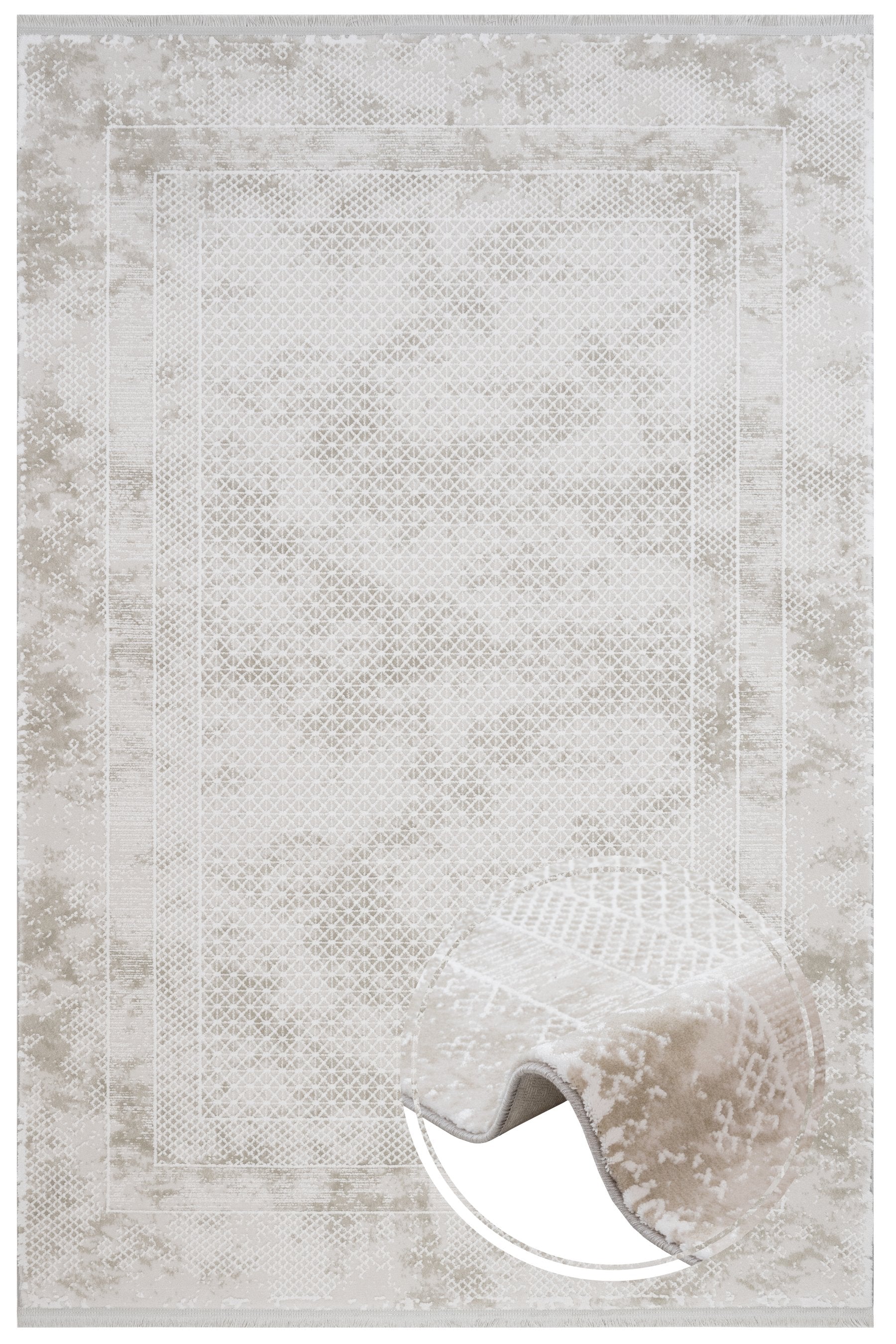 Cream Area Rug - Machine Made Rug with Fringed Edge Carpet for Living Room